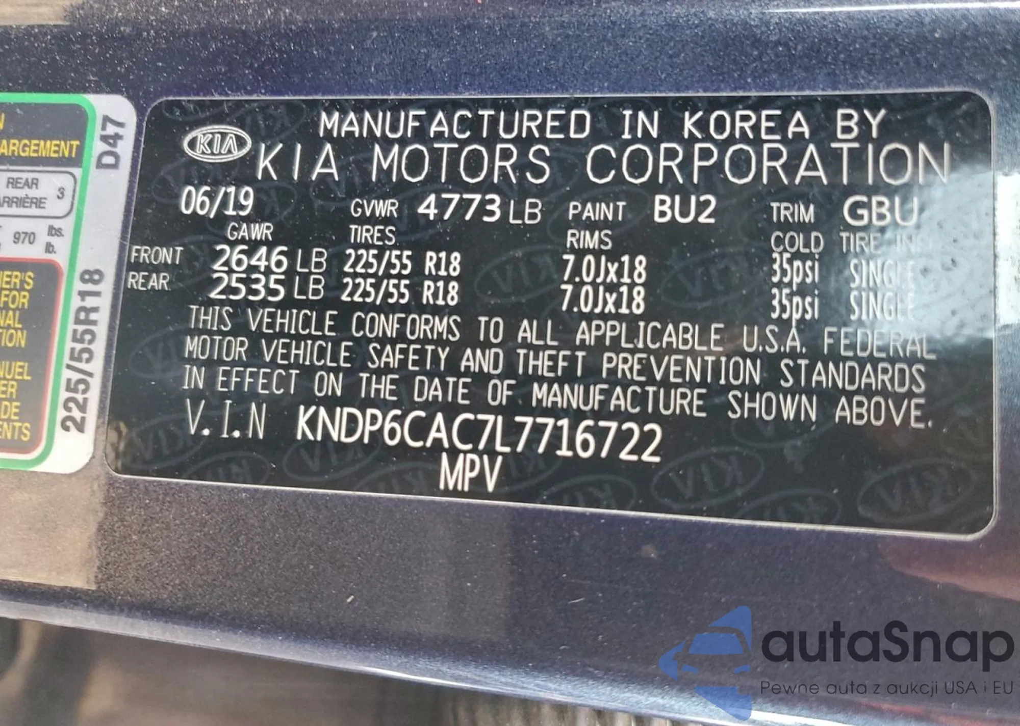 • VIN KNDP6CAC7L7716722