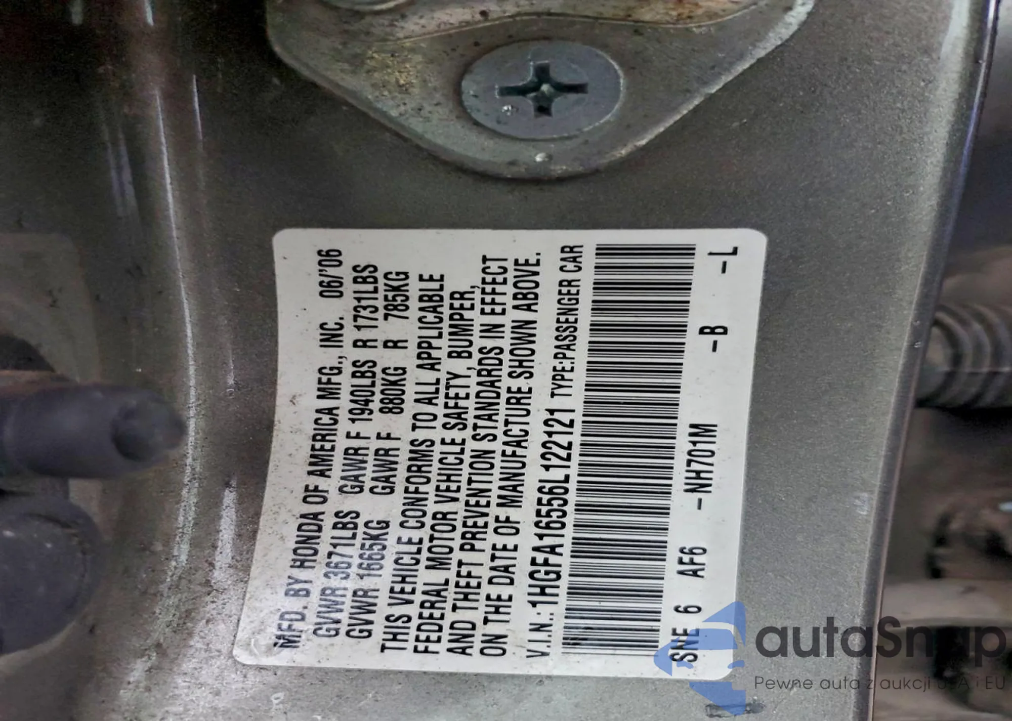 LOT: 95416405 VIN: 1HGFA16556L122121