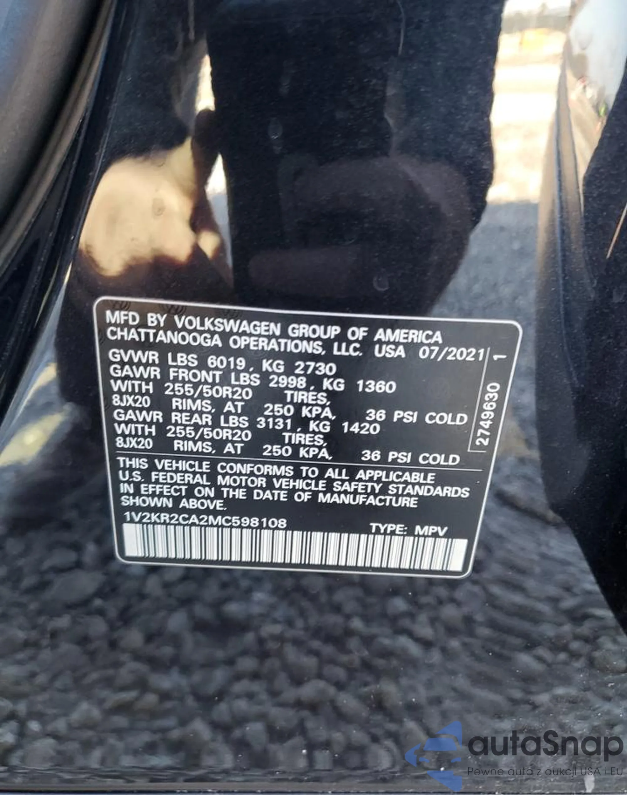 • VIN 1V2KR2CA2MC598108