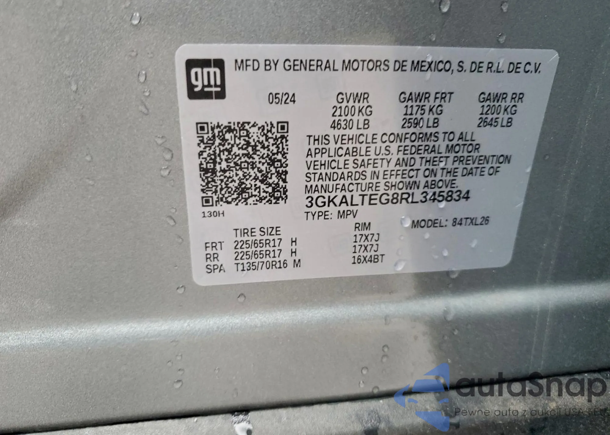 LOT: 94452935 VIN: 1G1RA6S58HU162049