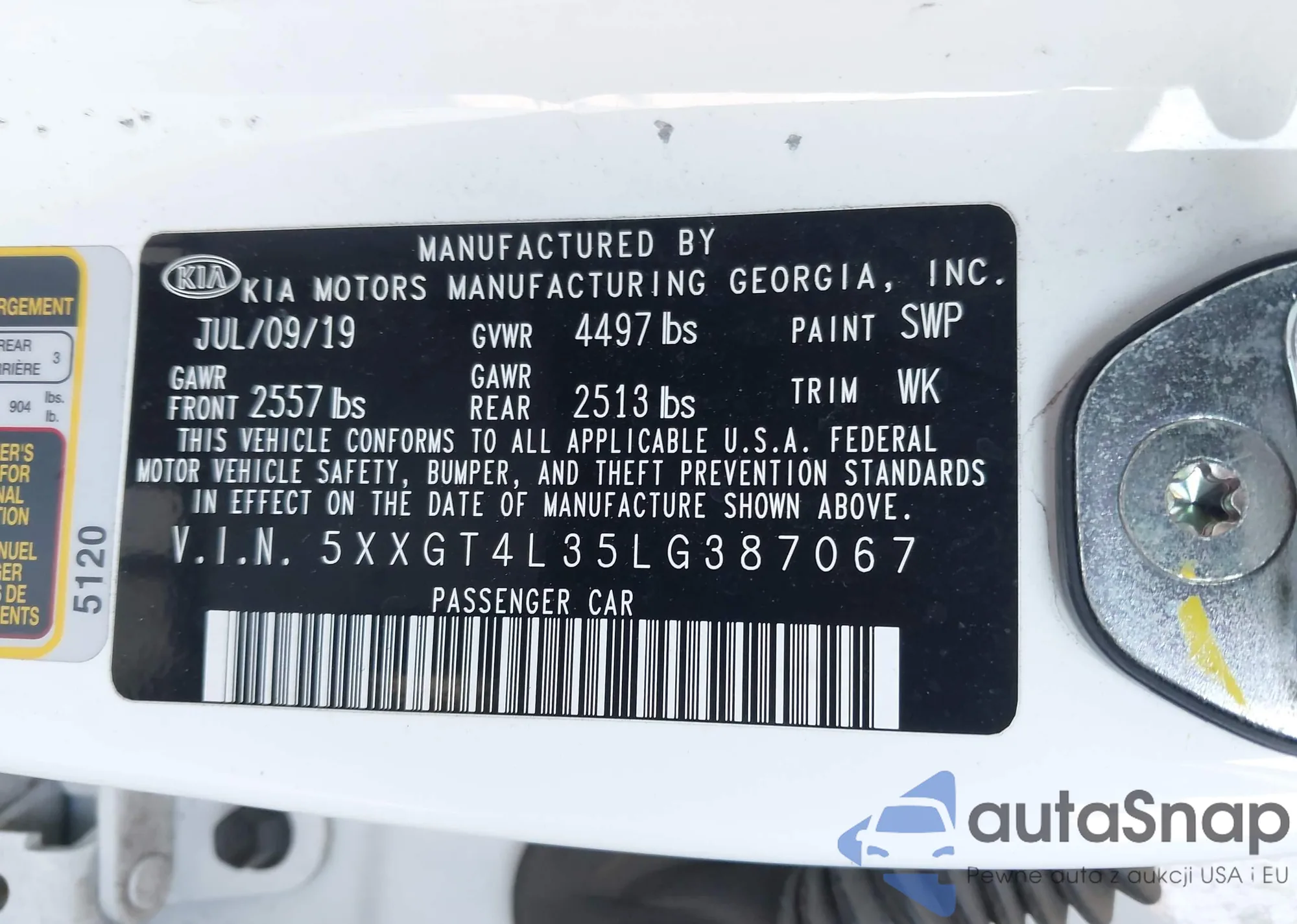 • VIN 5XXGT4L35LG387067