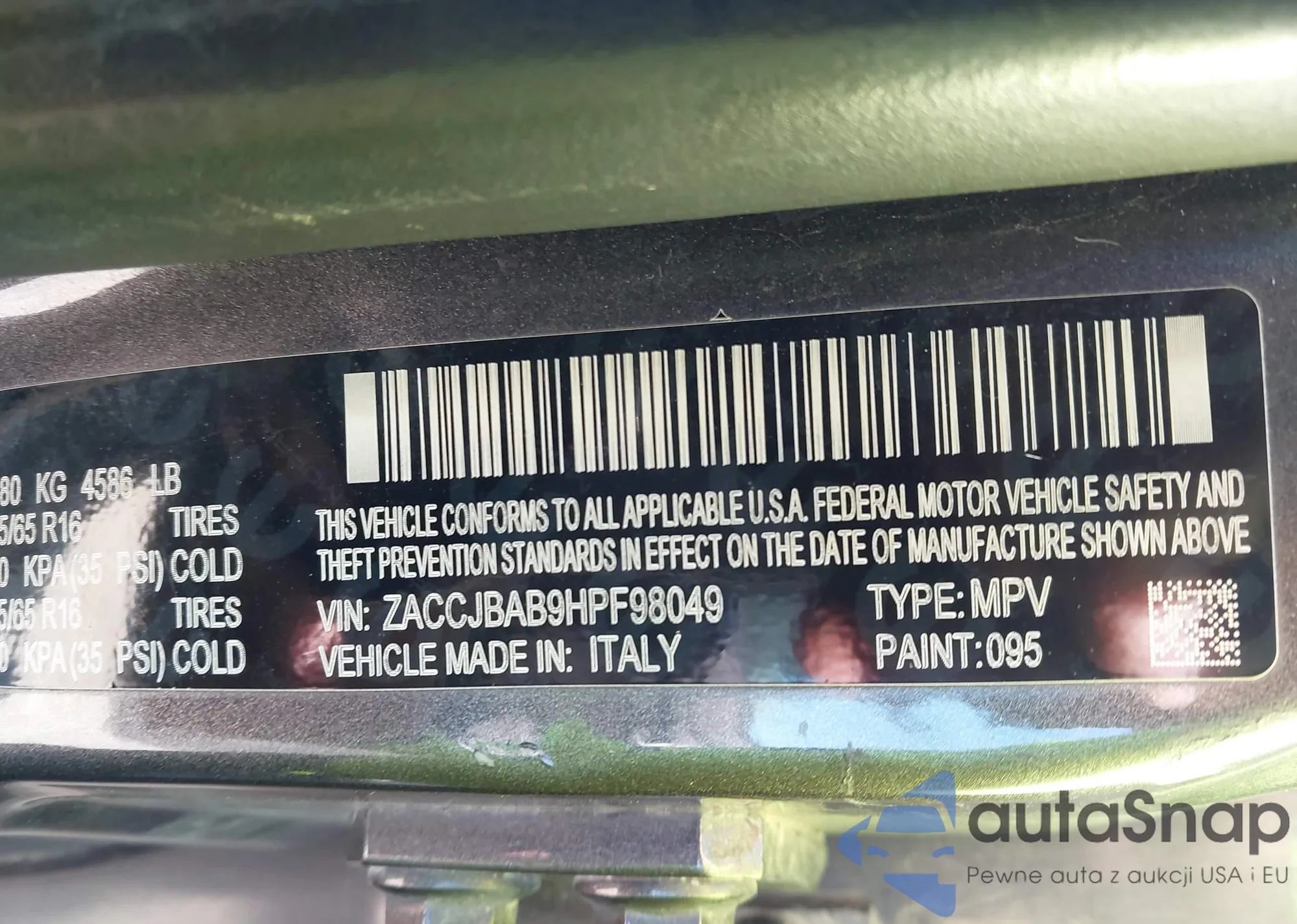 LOT: 43645437 VIN: ZACCJBAB9HPF98049