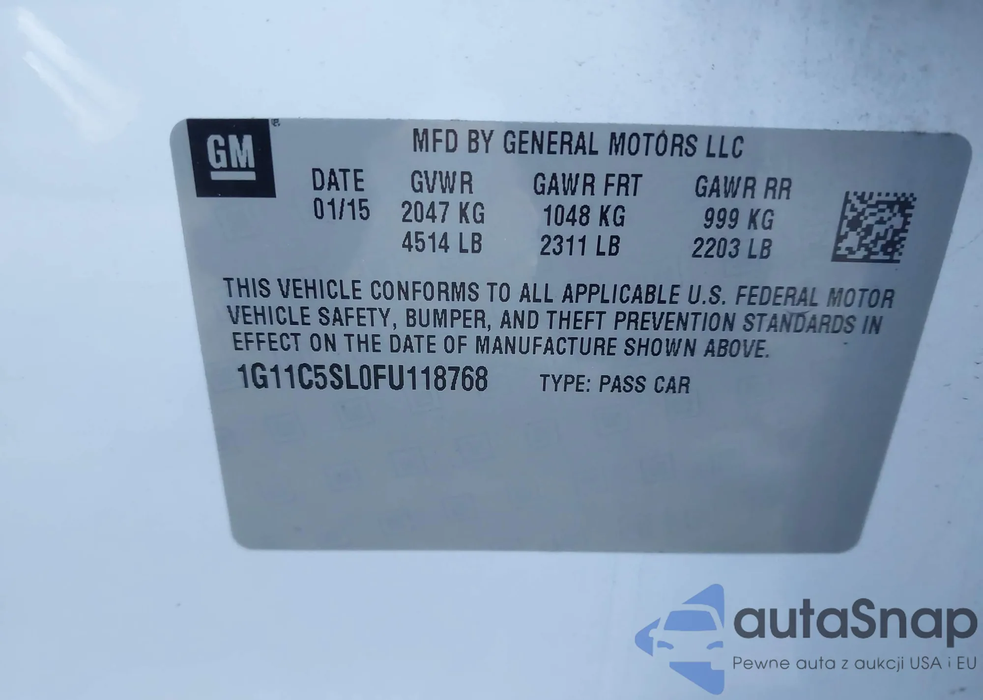 • VIN 1G11C5SL0FU118768
