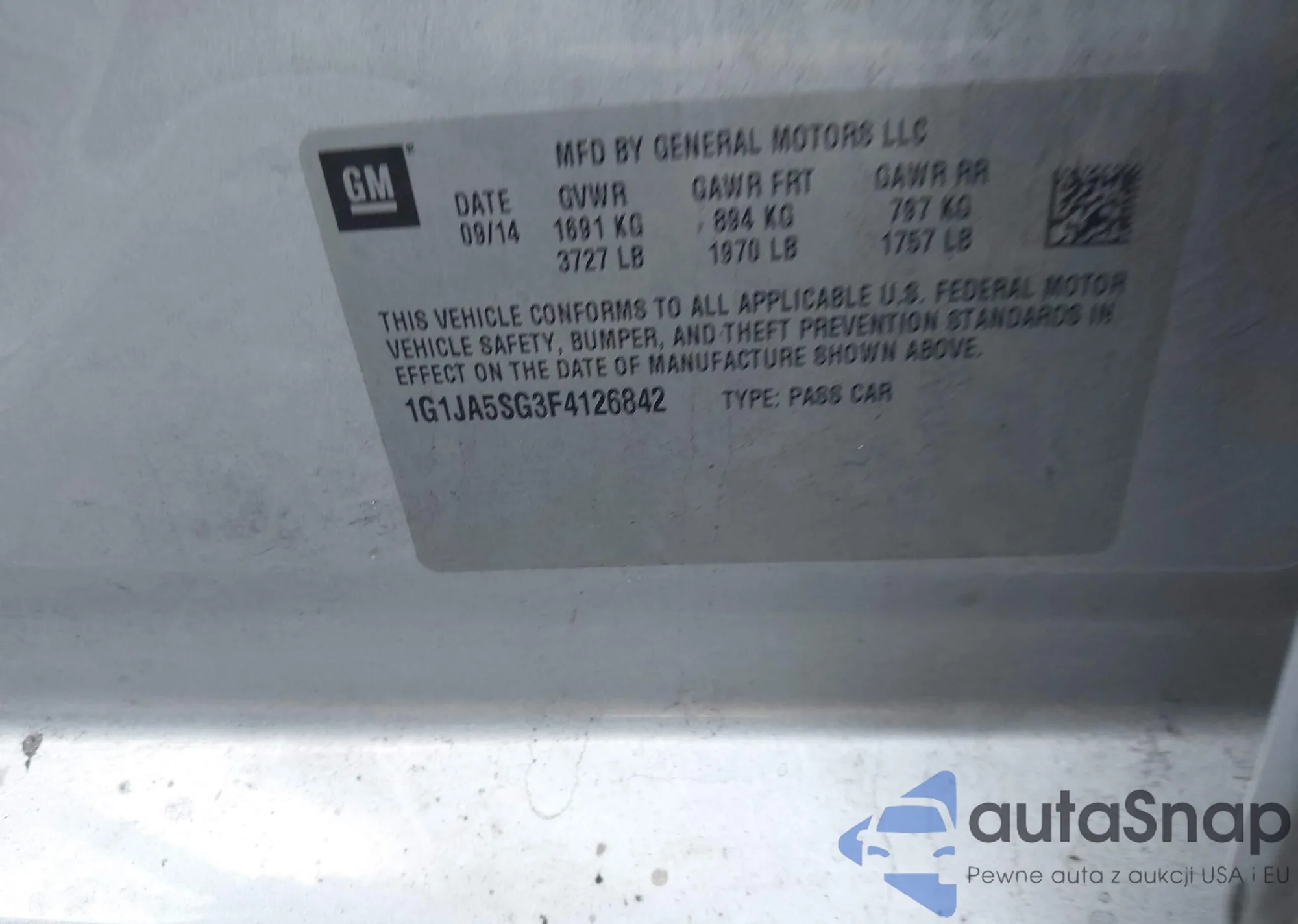 LOT: 43786742 VIN: 1G1JA5SG3F4126842