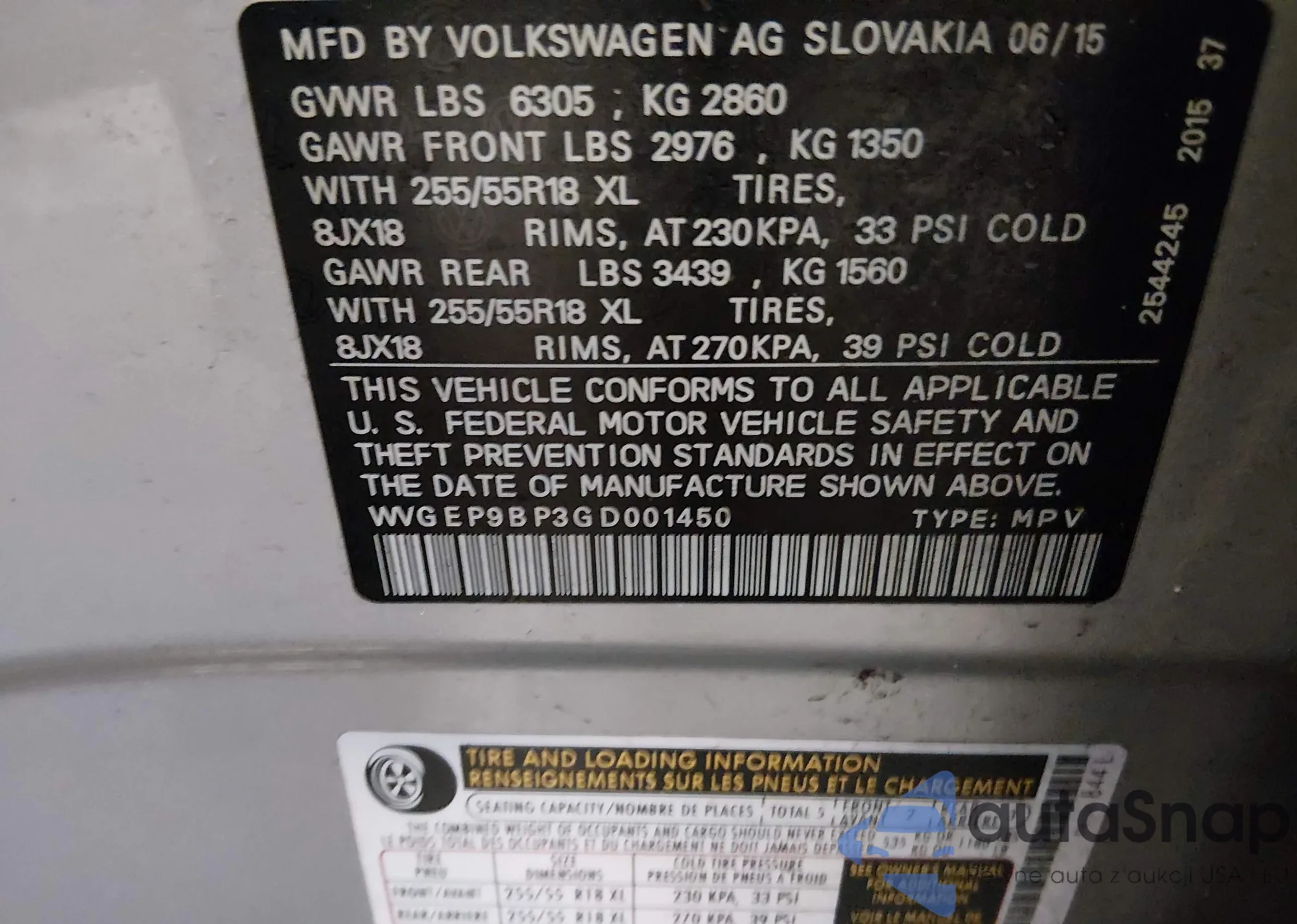 • VIN WVGEP9BP3GD001450