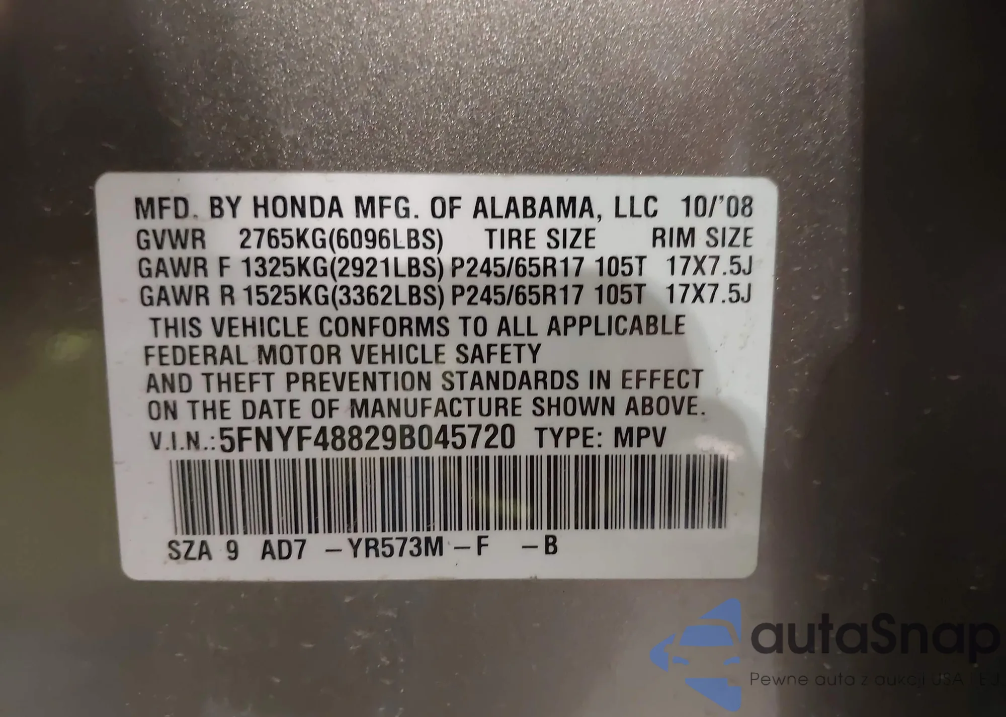 LOT: 43923152 VIN: 2HGEJ6428YH103483