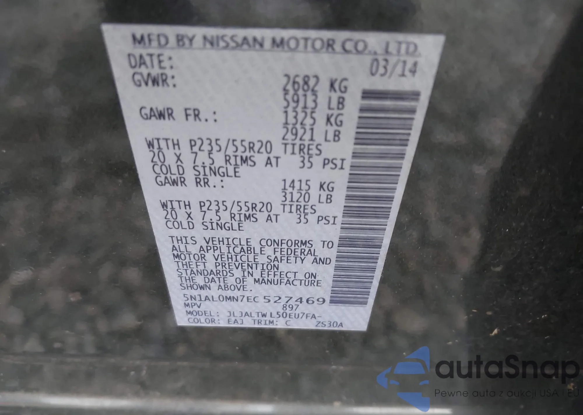 • VIN 5N1AA0NC5DN604801