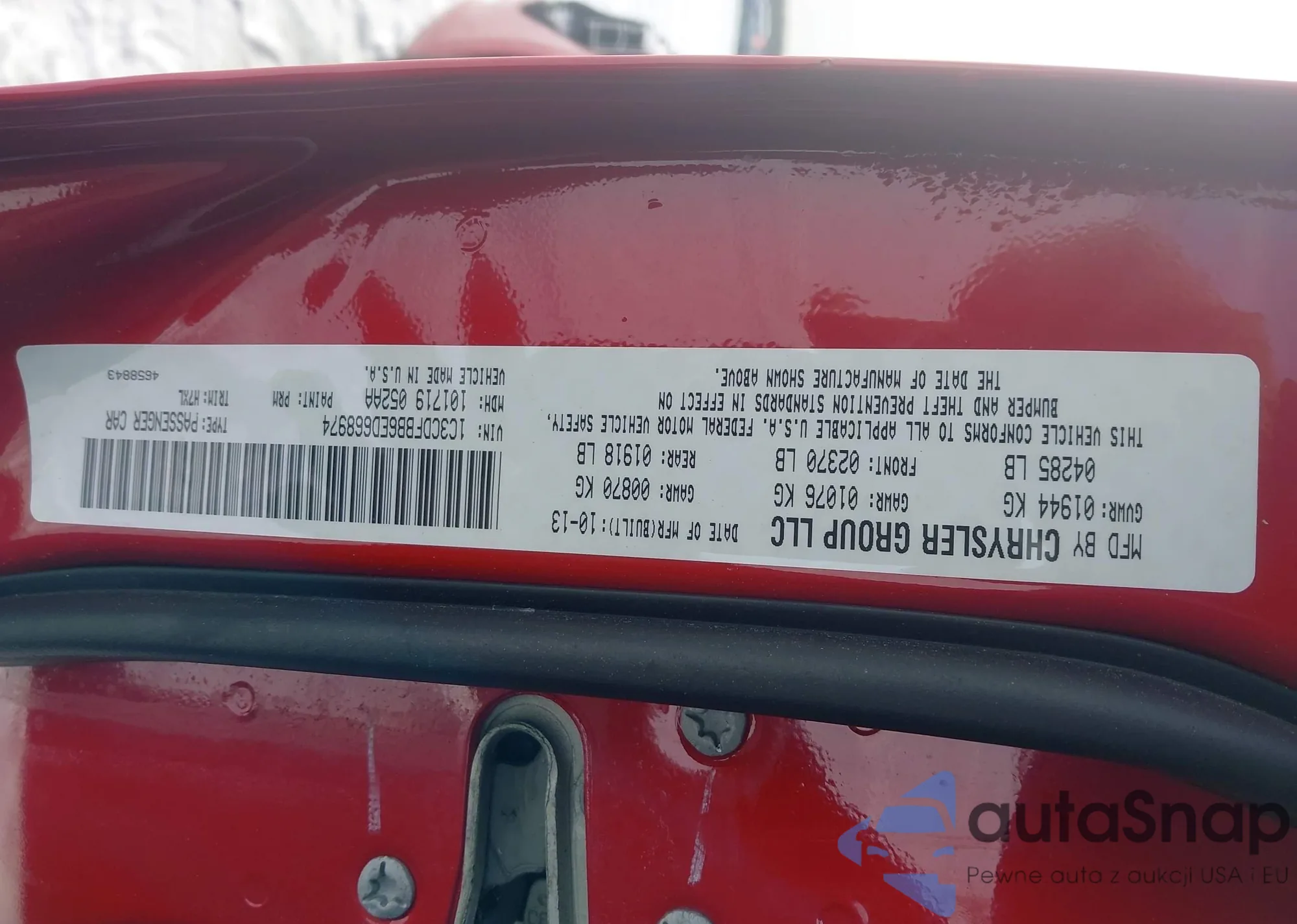 • VIN 1C3CDFBB6ED668974
