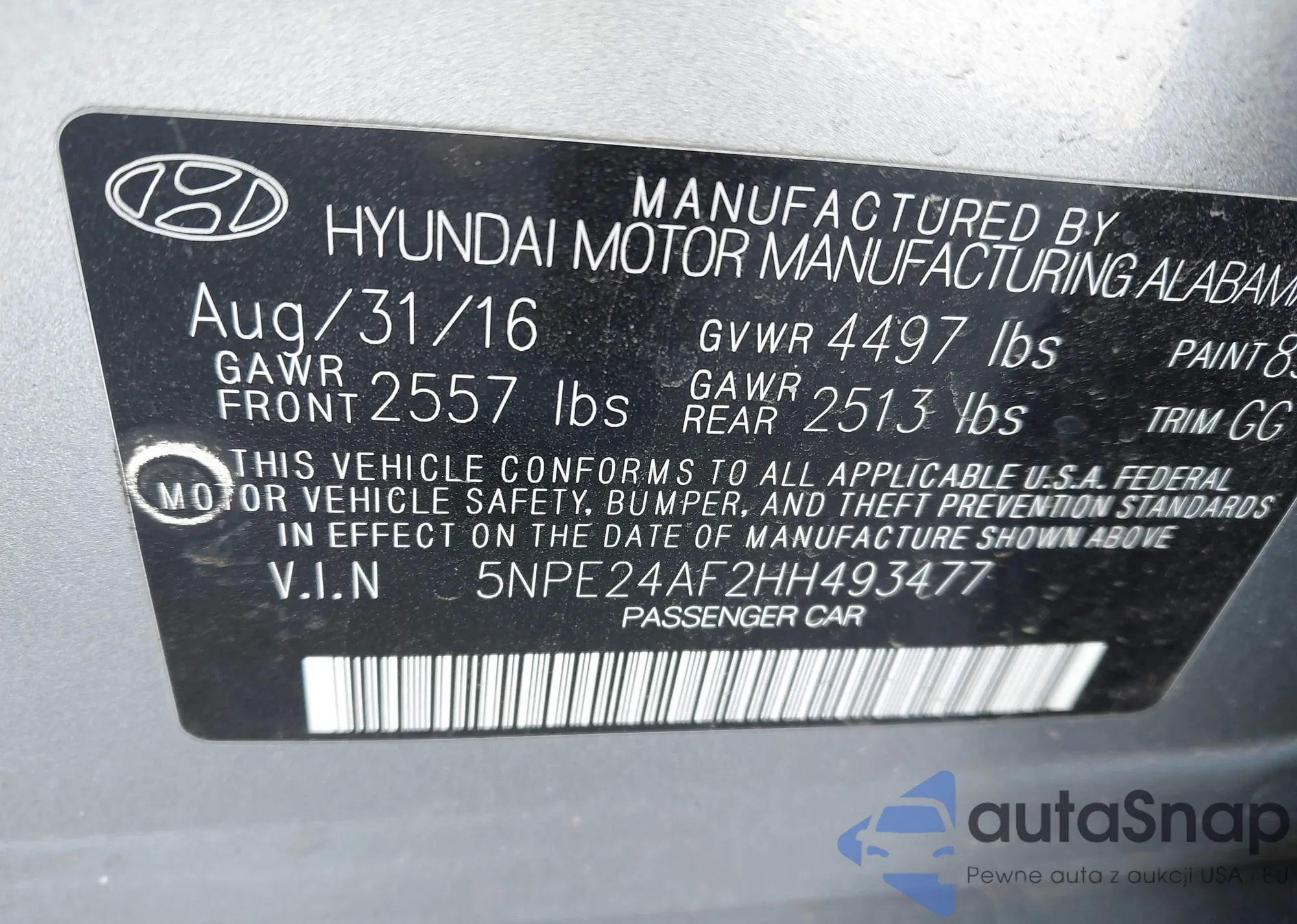 • VIN 5NPE24AF2HH493477