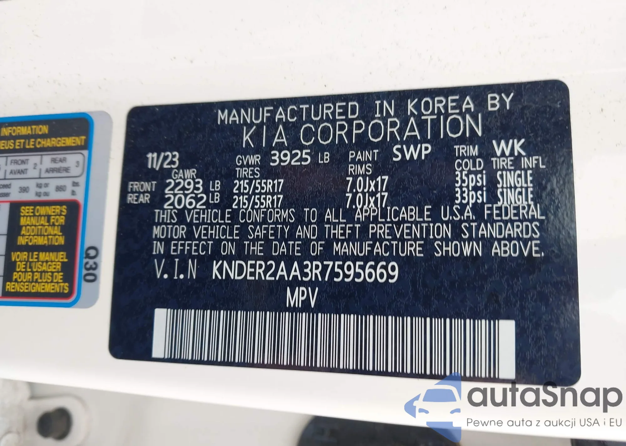 • VIN KNDER2AA3R7595669