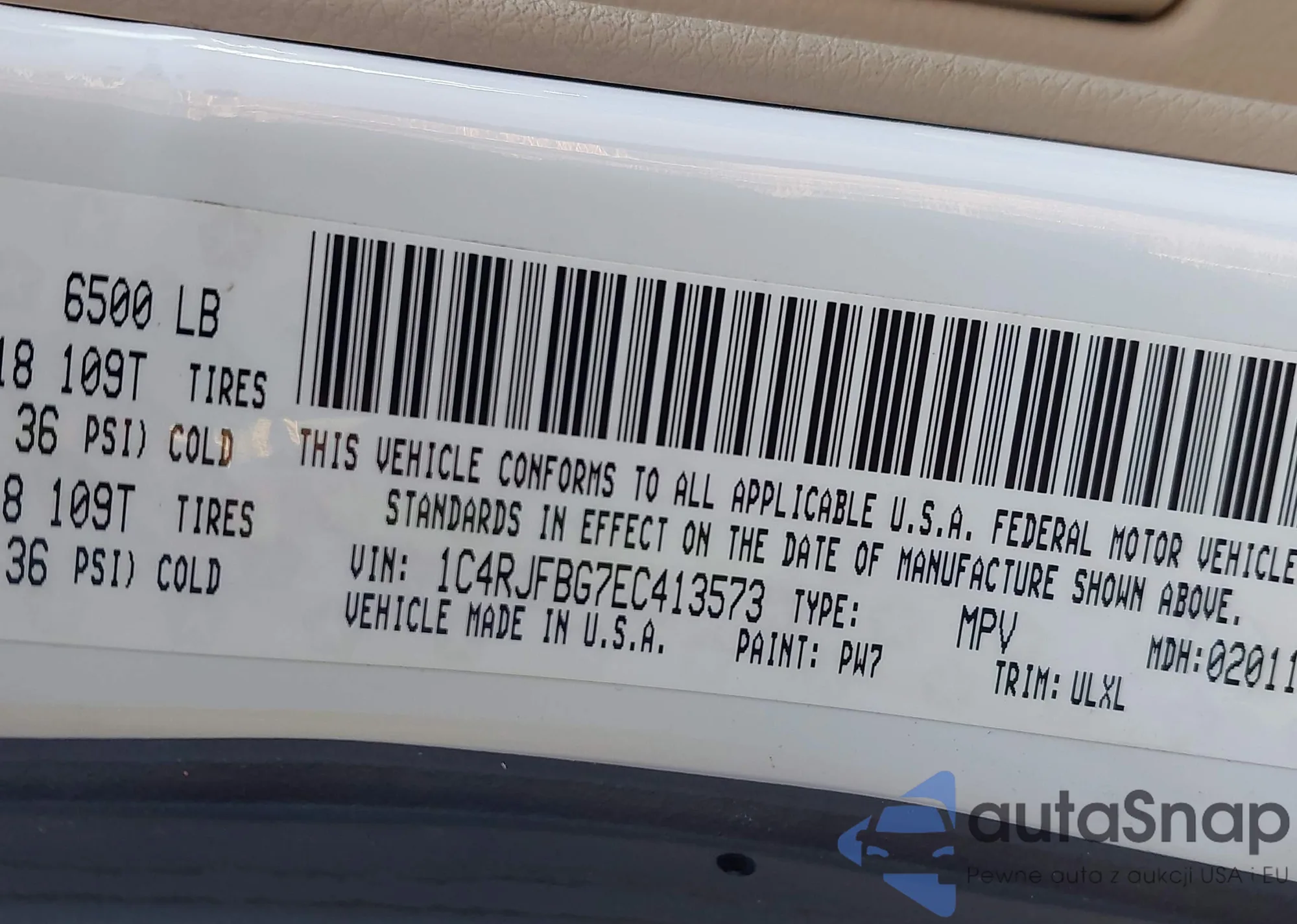 • VIN 1C4RJFBG7EC413573