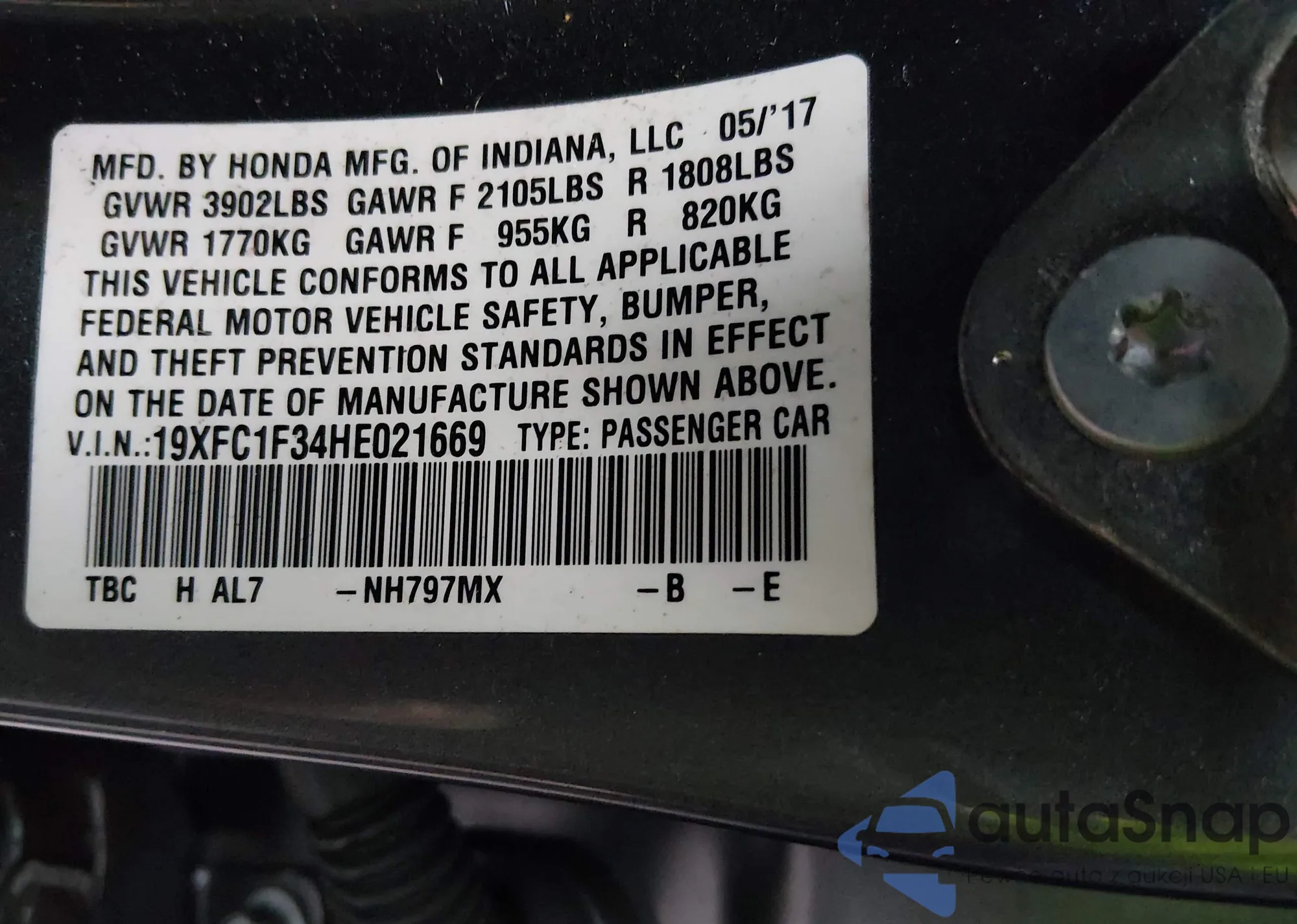 • VIN 19XFC1F34HE021669