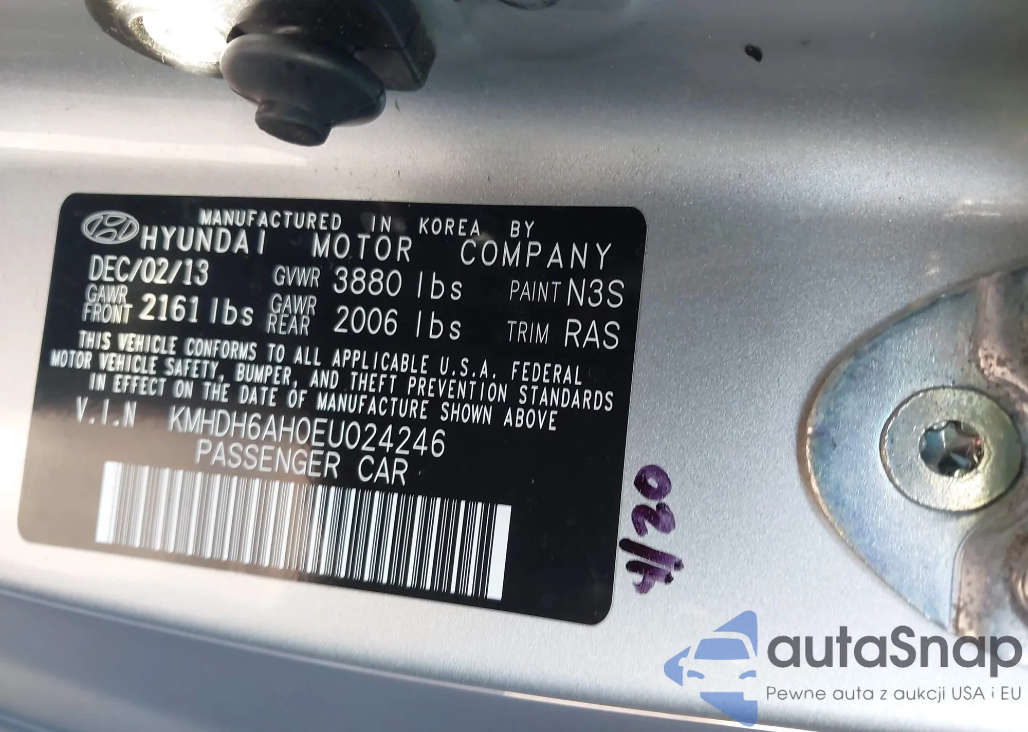 • VIN KMHDH6AH0EU024246