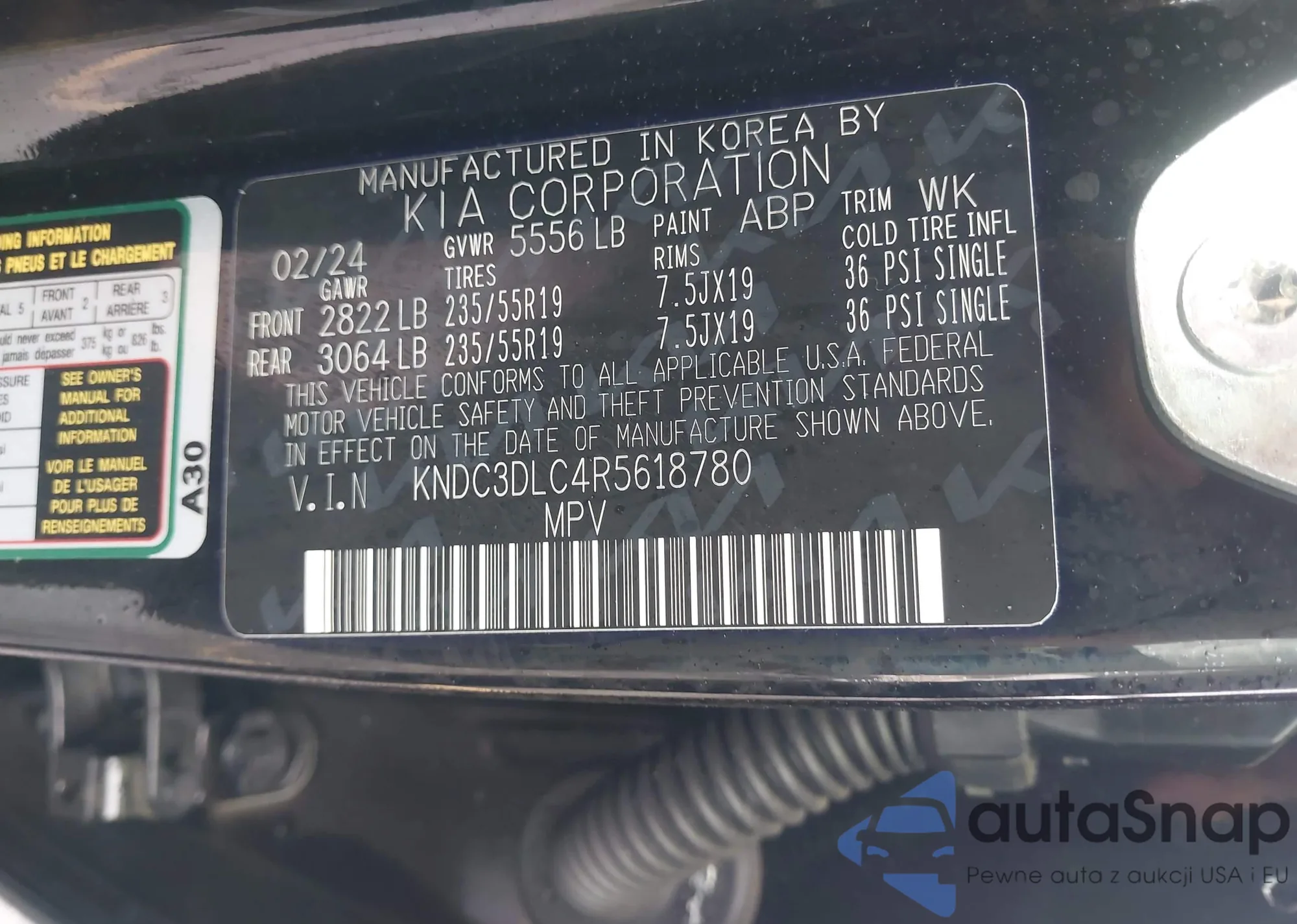 • VIN KNDC3DLC4R5618780