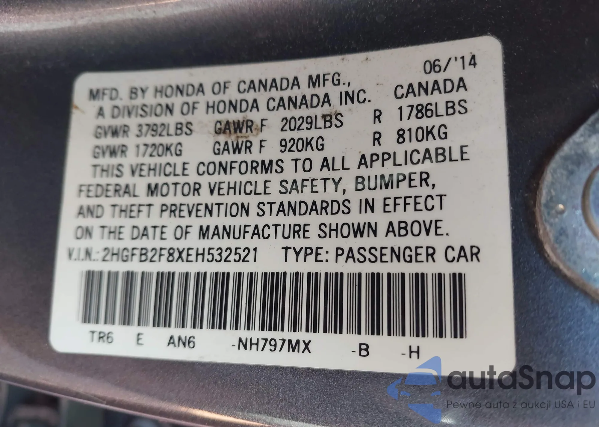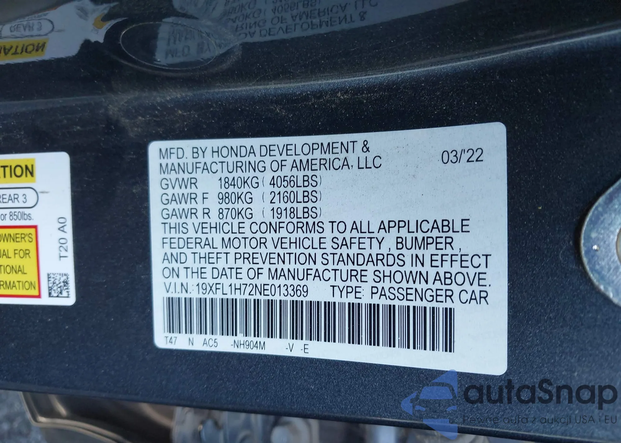 • VIN 19XFL1H72NE013369