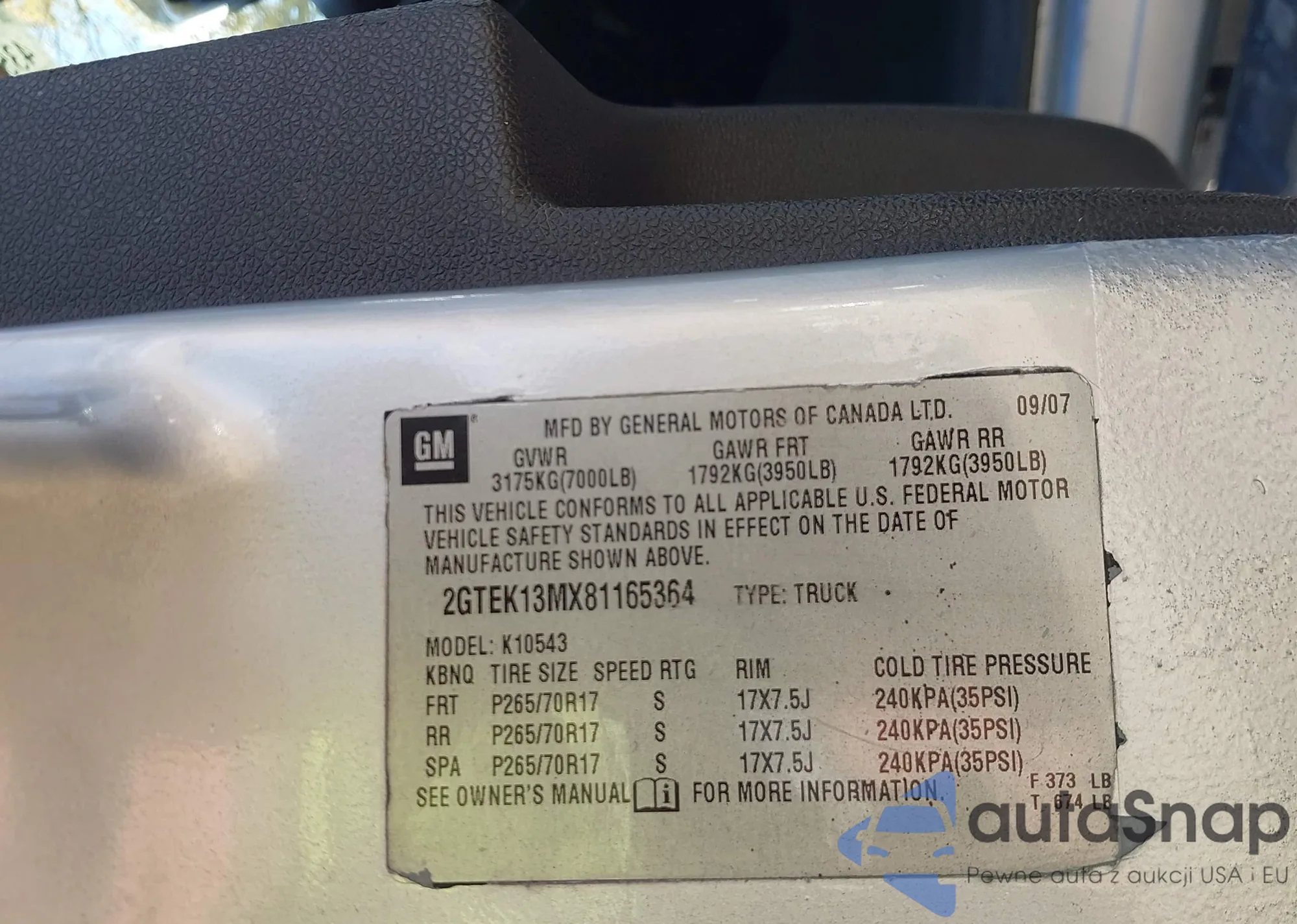 • VIN 2GTEK13MX81165364