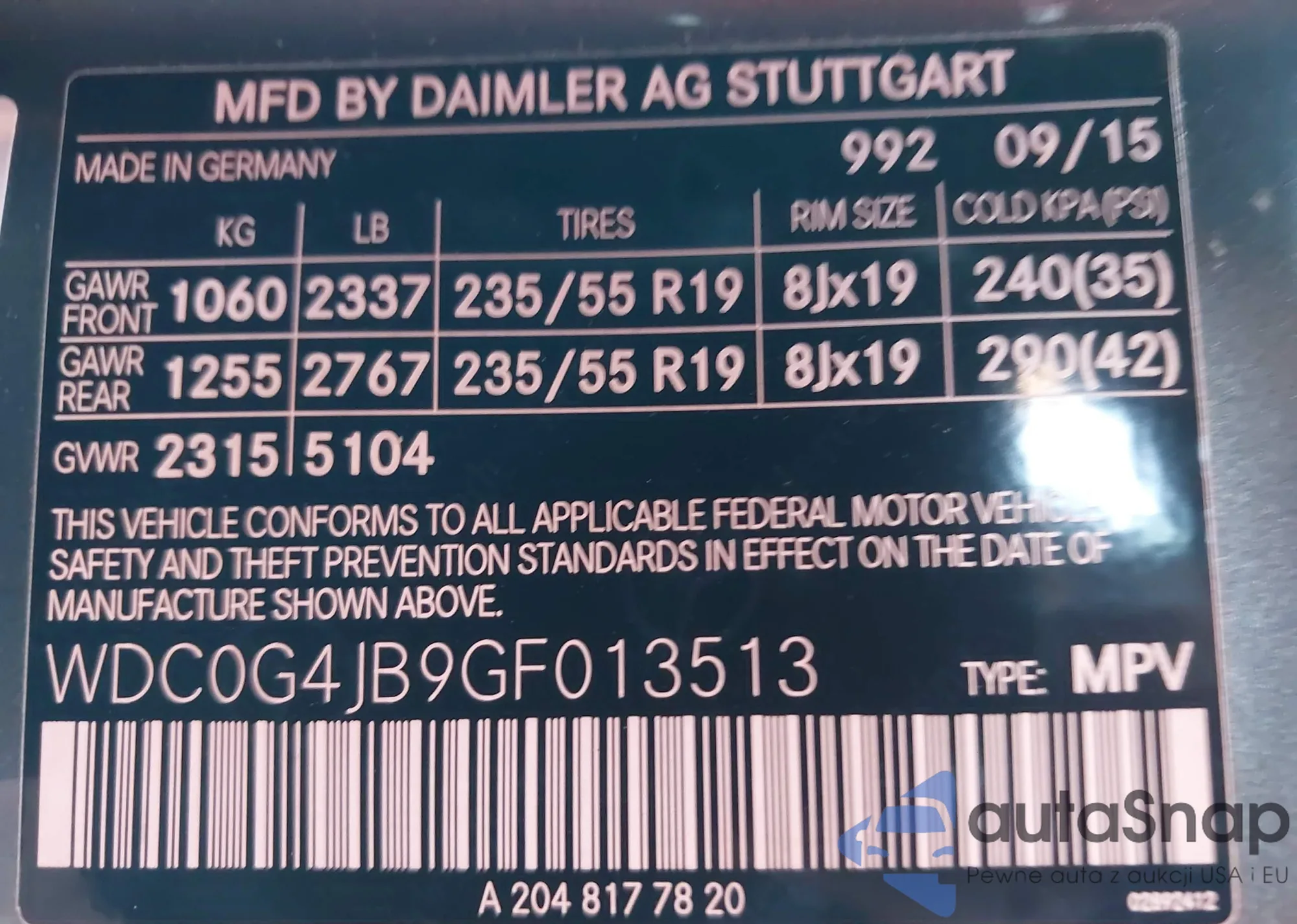 • VIN KM8J33AL9KU981555