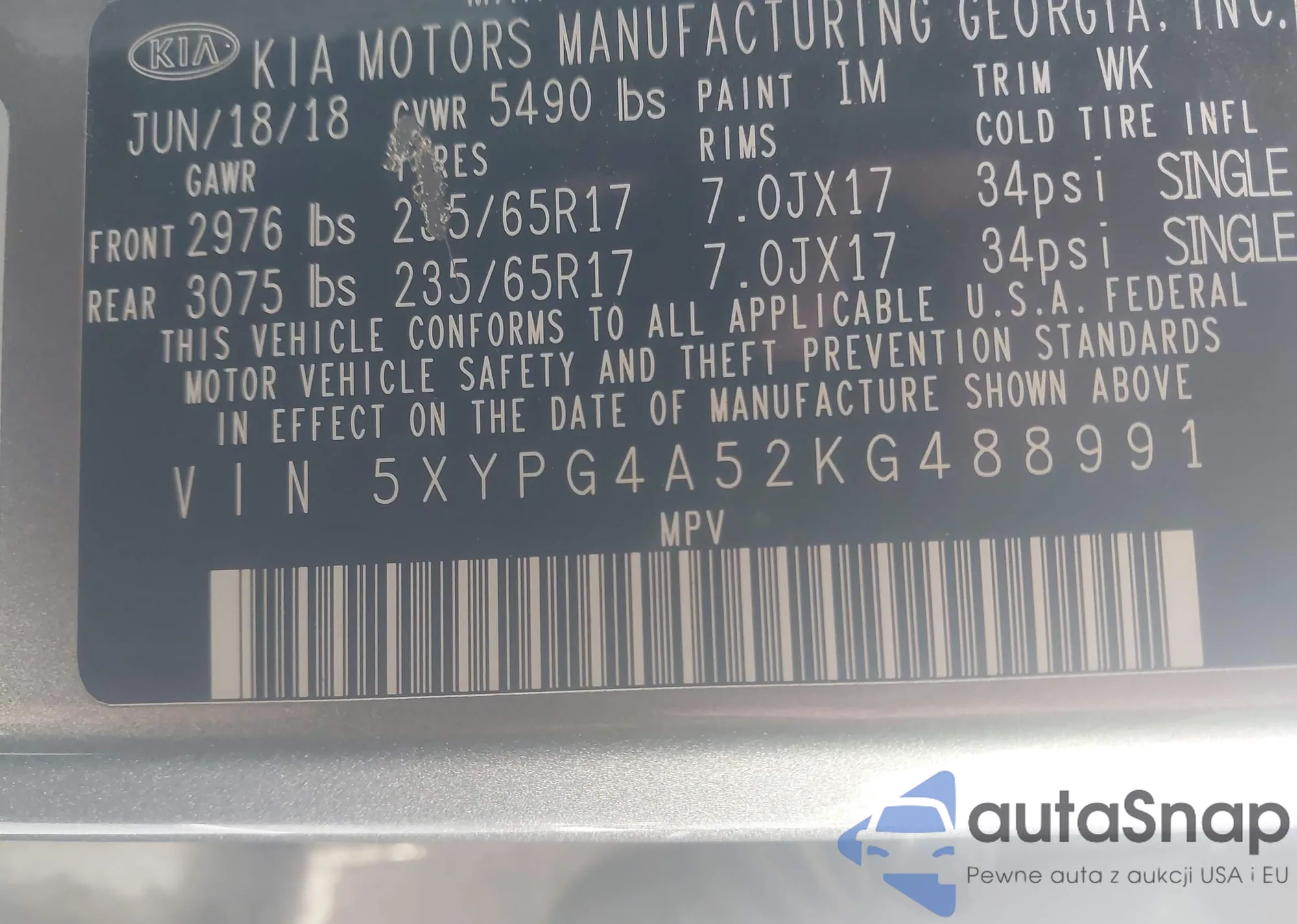 • VIN 5XYPG4A52KG488991