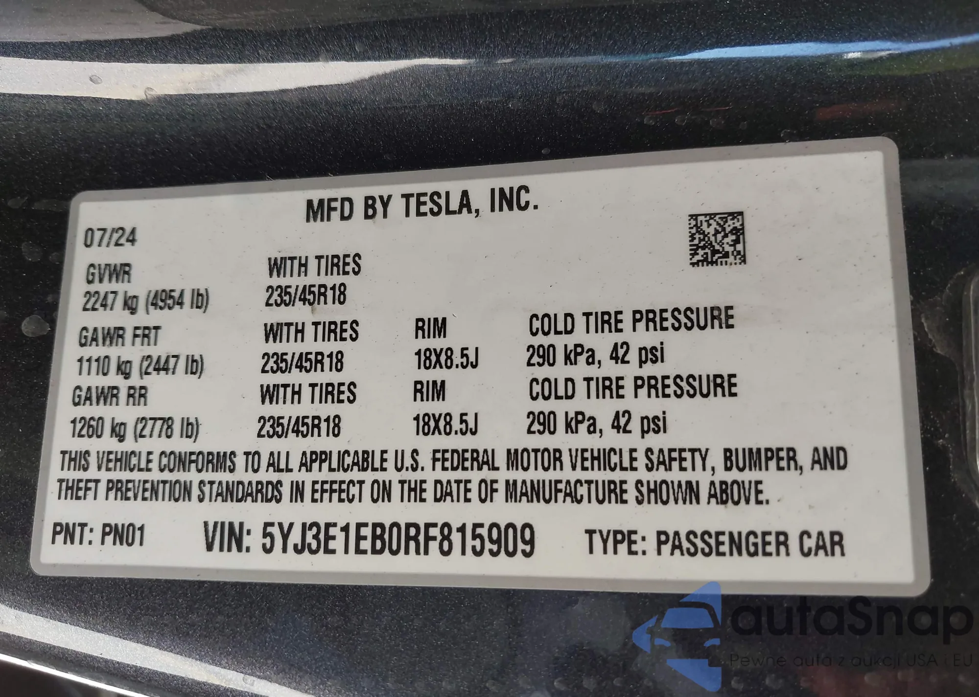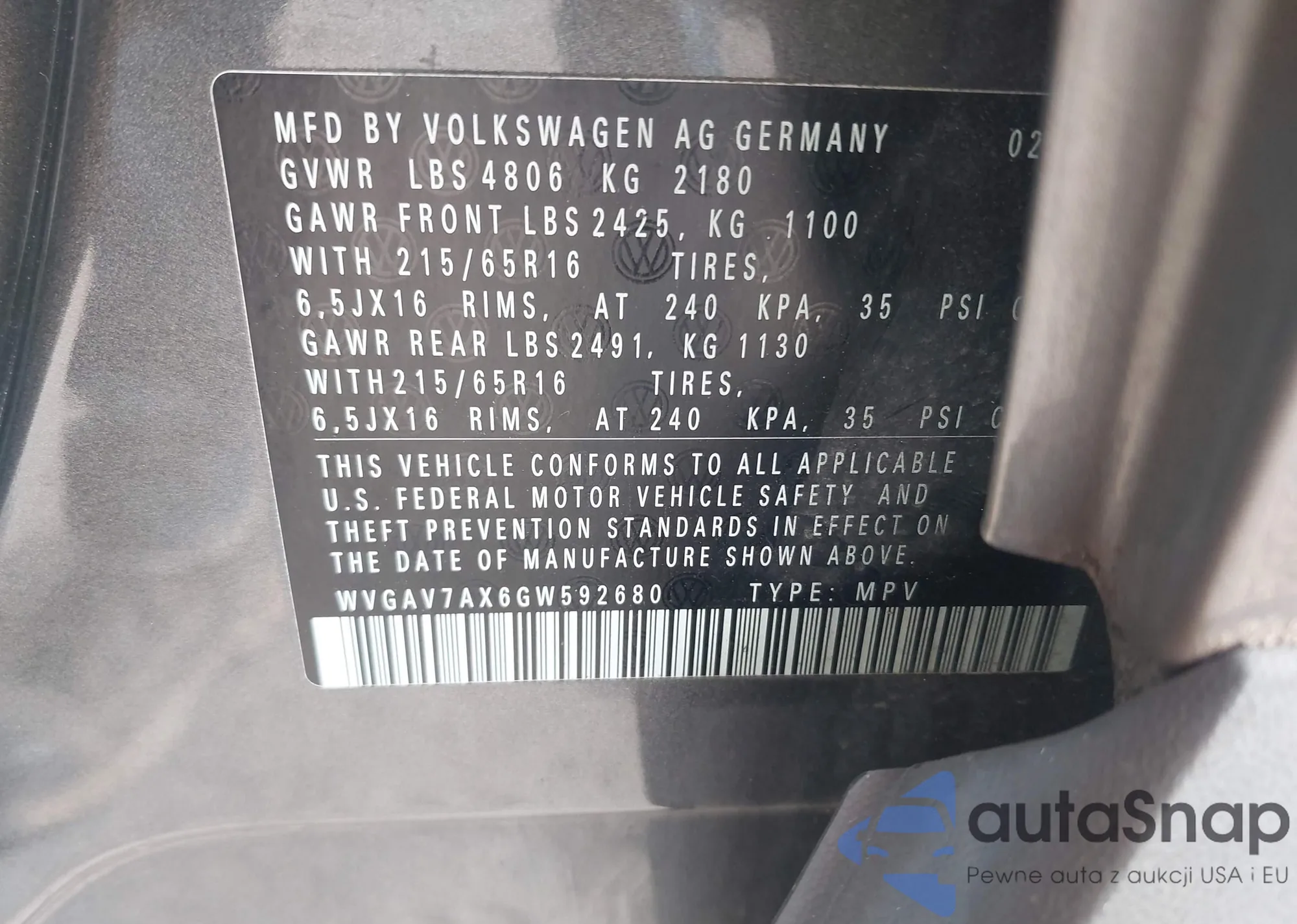 • VIN 1G1ZJ5SU6HF224781