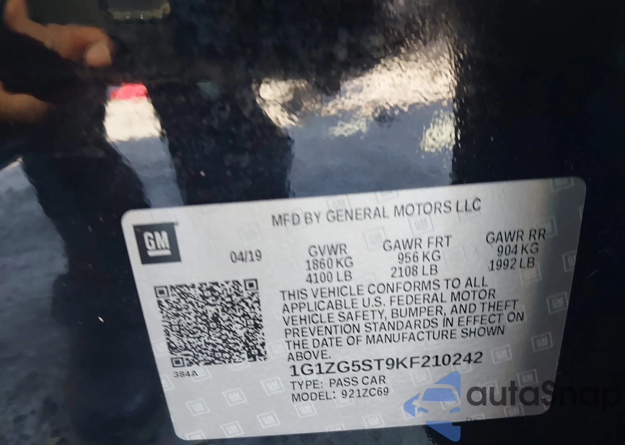 • VIN 1G1ZG5ST9KF210242