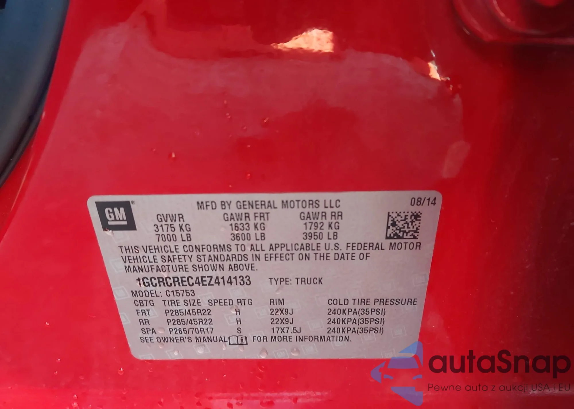 • VIN 1GCRCREC4EZ414133