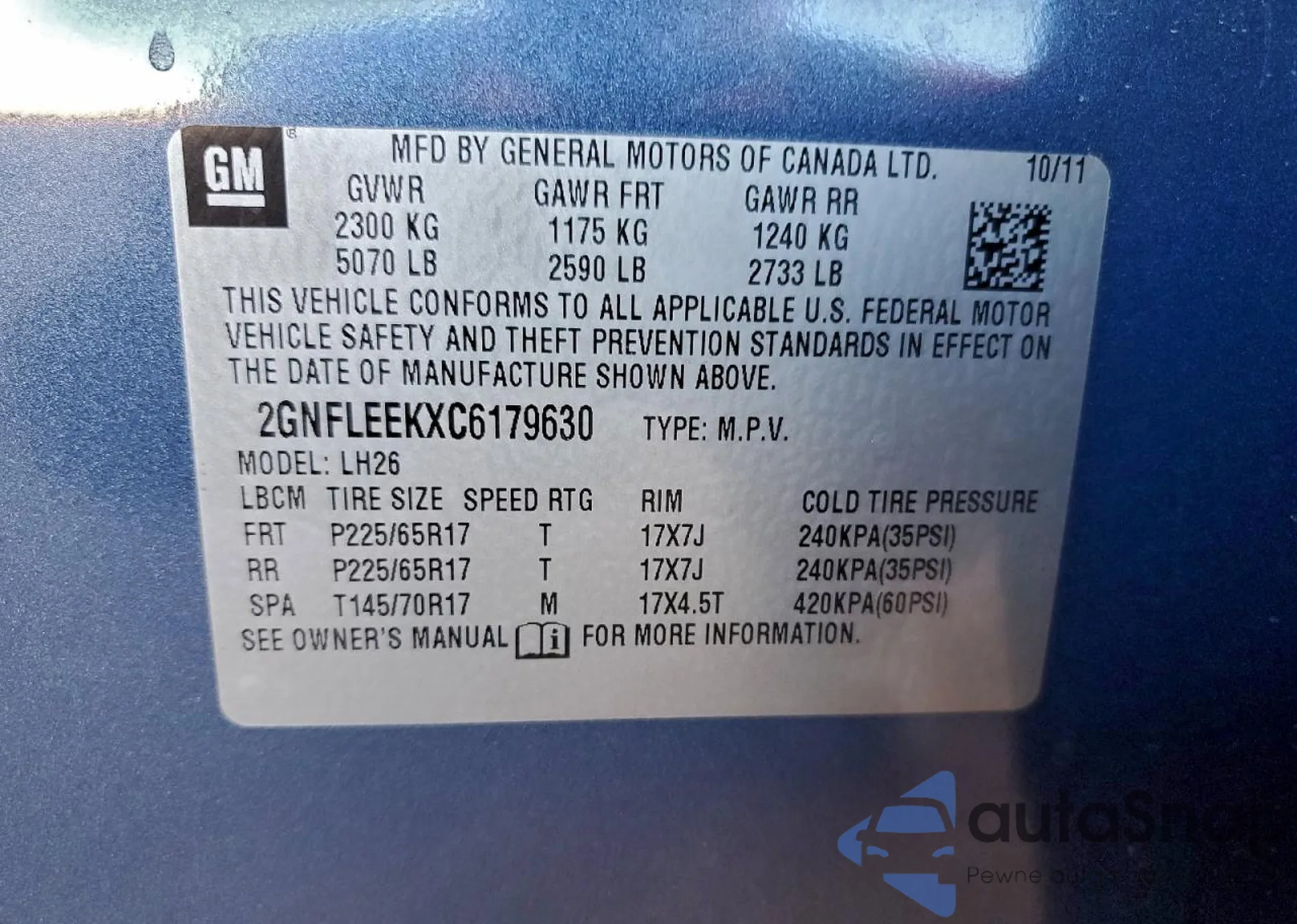 • VIN 2GNFLEEKXC6179630