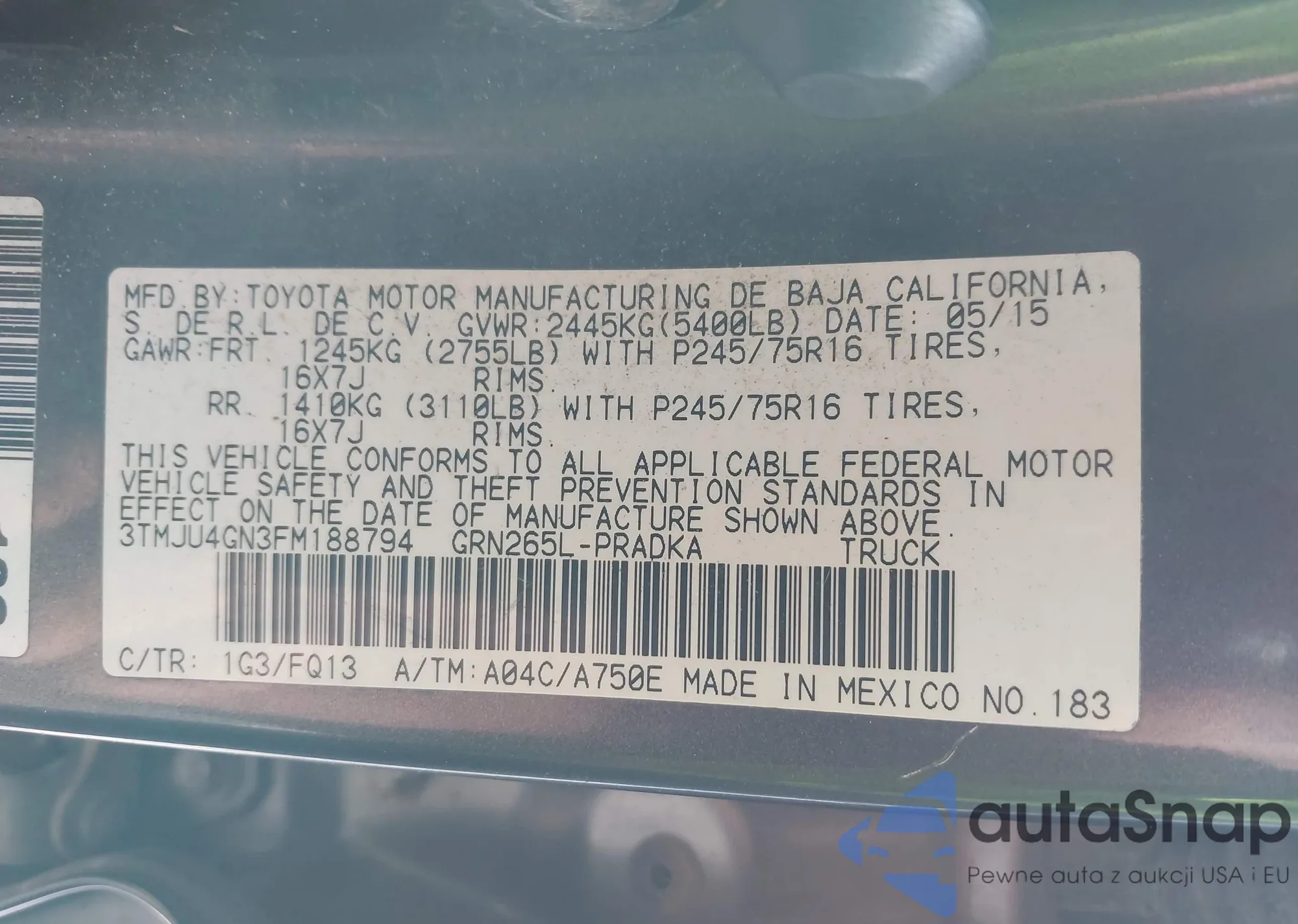 • VIN KM8JU3AG9FU958220