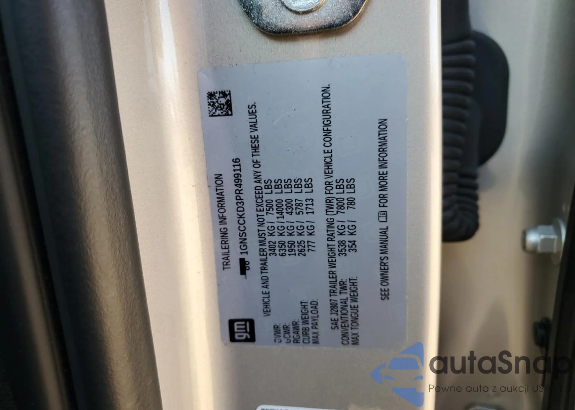 • VIN 1GNSCCKD3PR499116