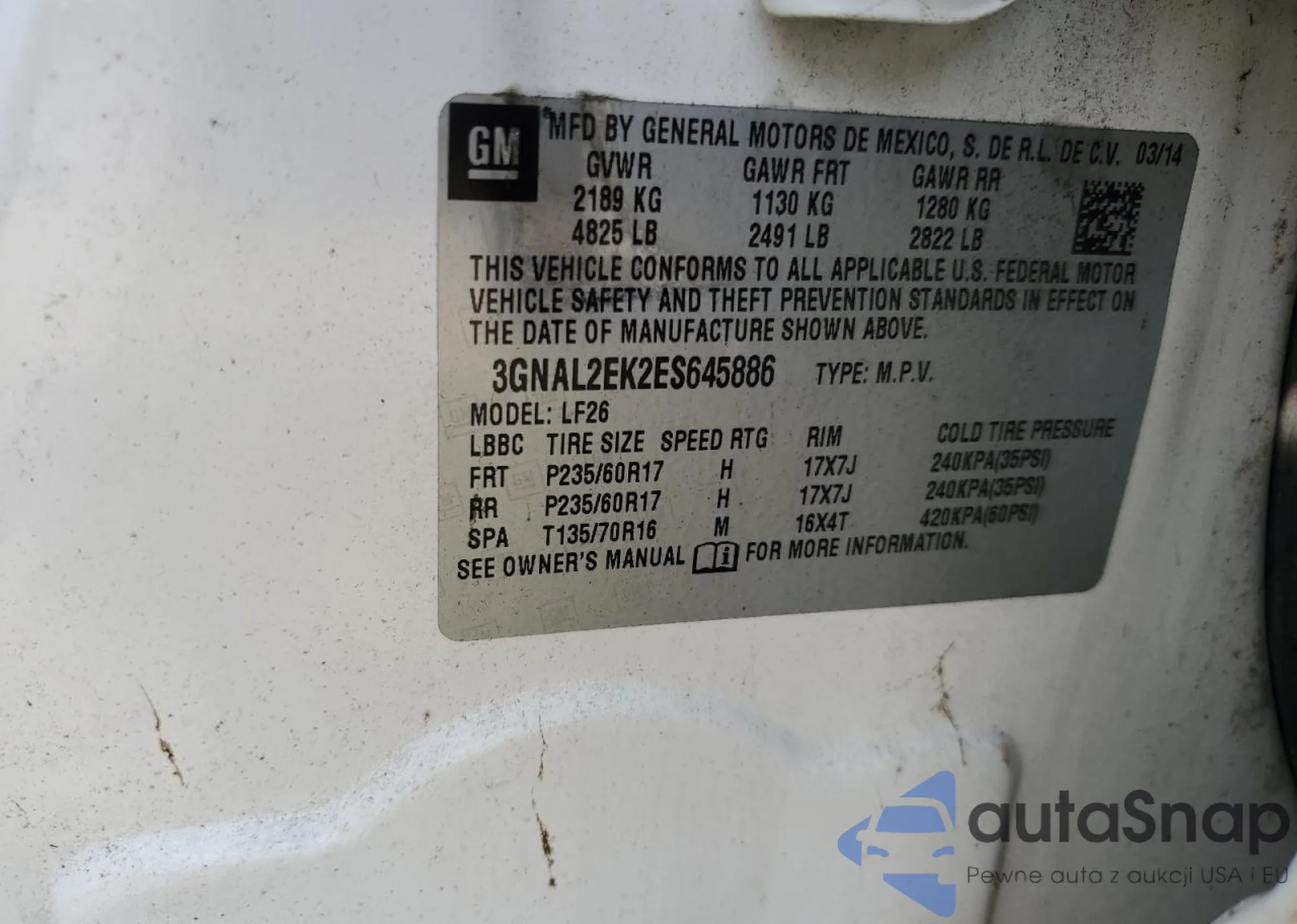 • VIN 3GNAL2EK2ES645886