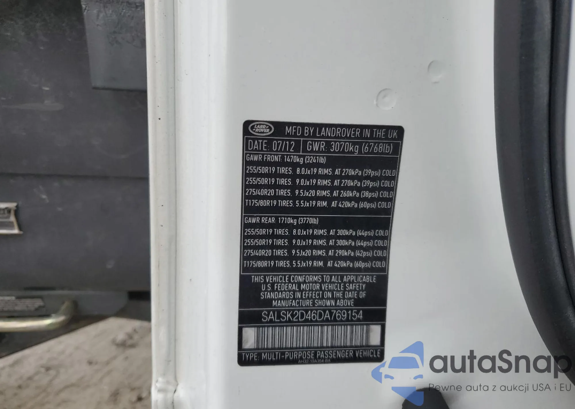 • VIN SALSK2D46DA769154