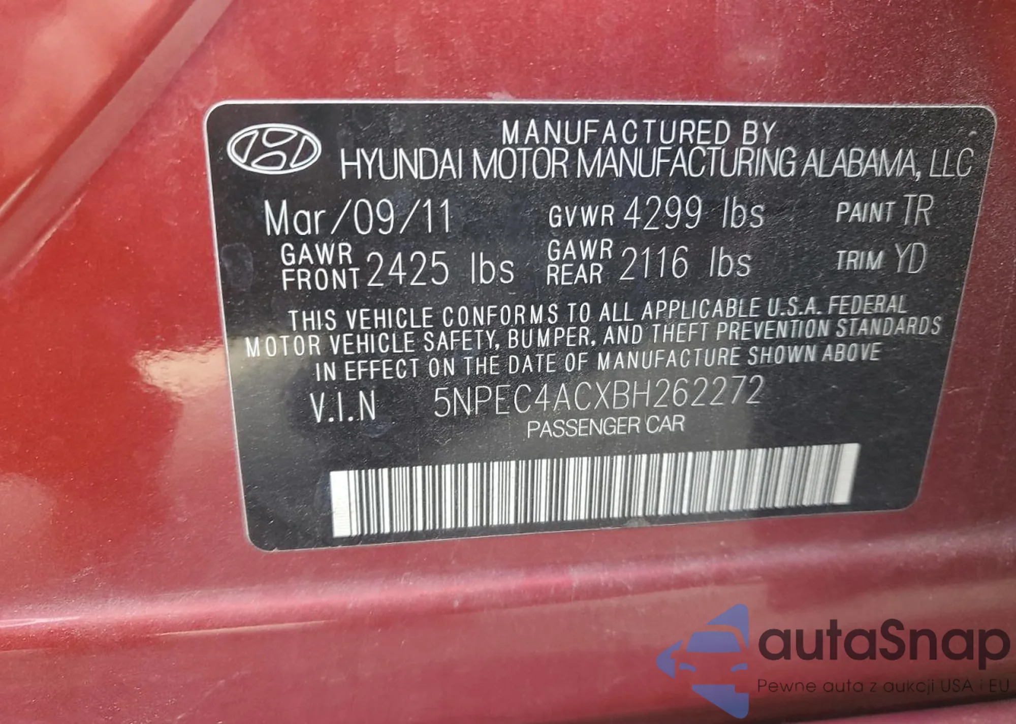 • VIN 5NPEC4ACXBH262272