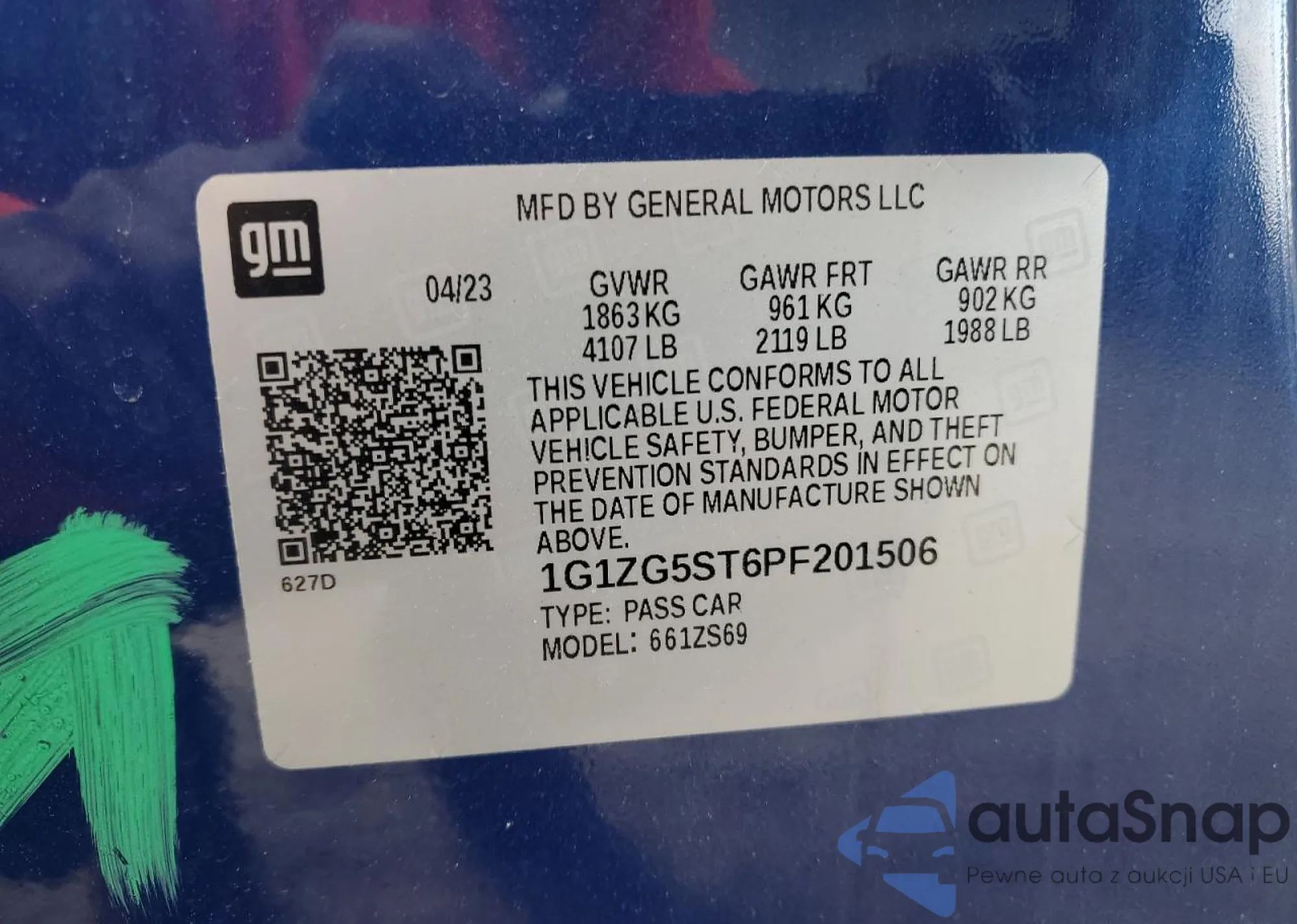 • VIN 1G1ZG5ST6PF201506