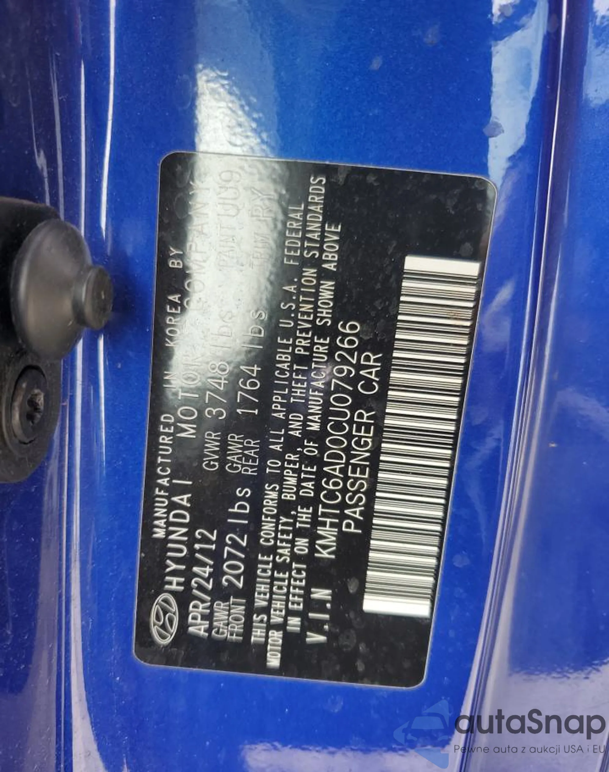• VIN KMHTC6AD0CU079266