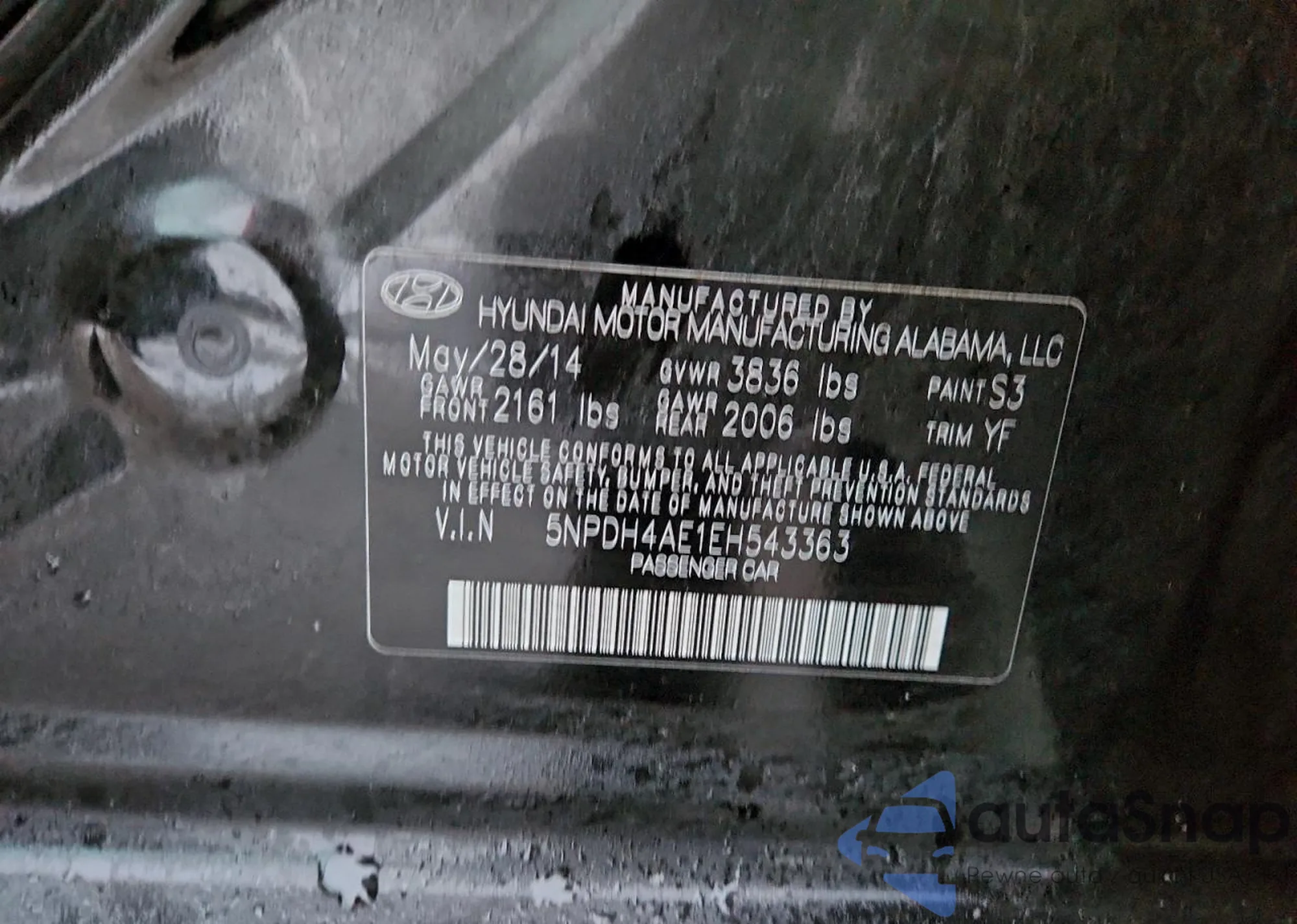 • VIN 5NPDH4AE1EH543363