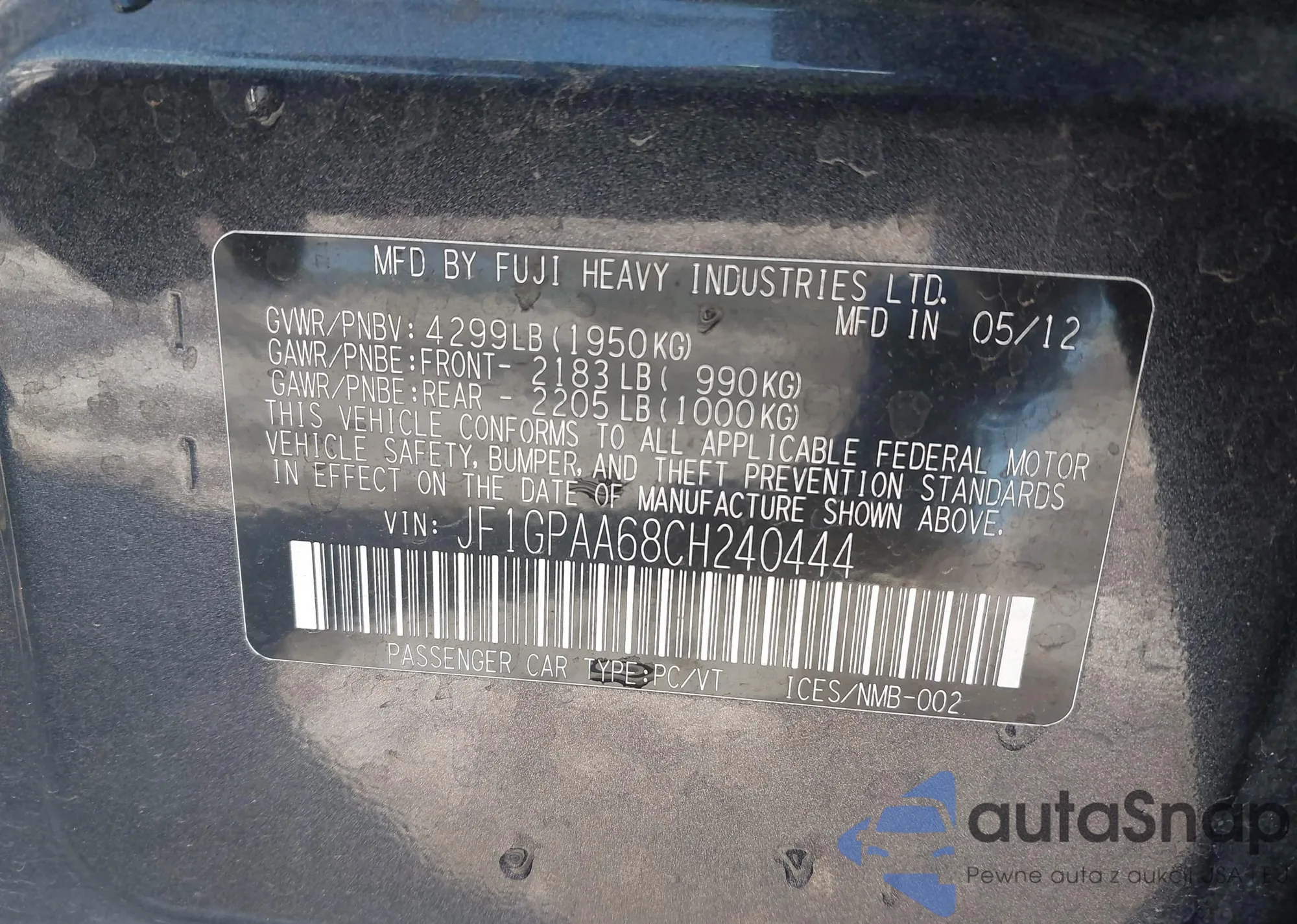 • VIN JF1GPAA68CH240444