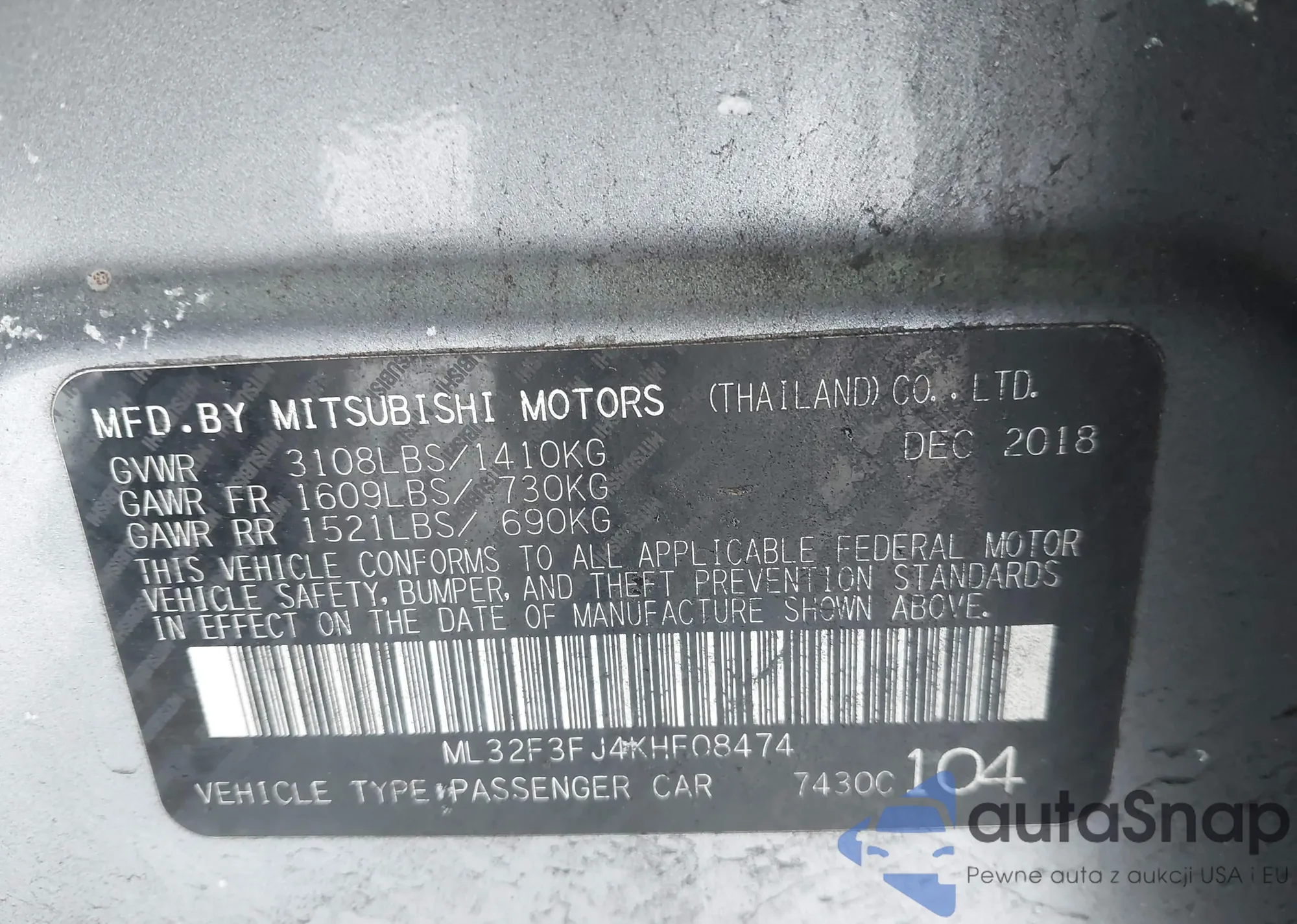 LOT: 43890676 VIN: ML32F3FJ4KHF08474