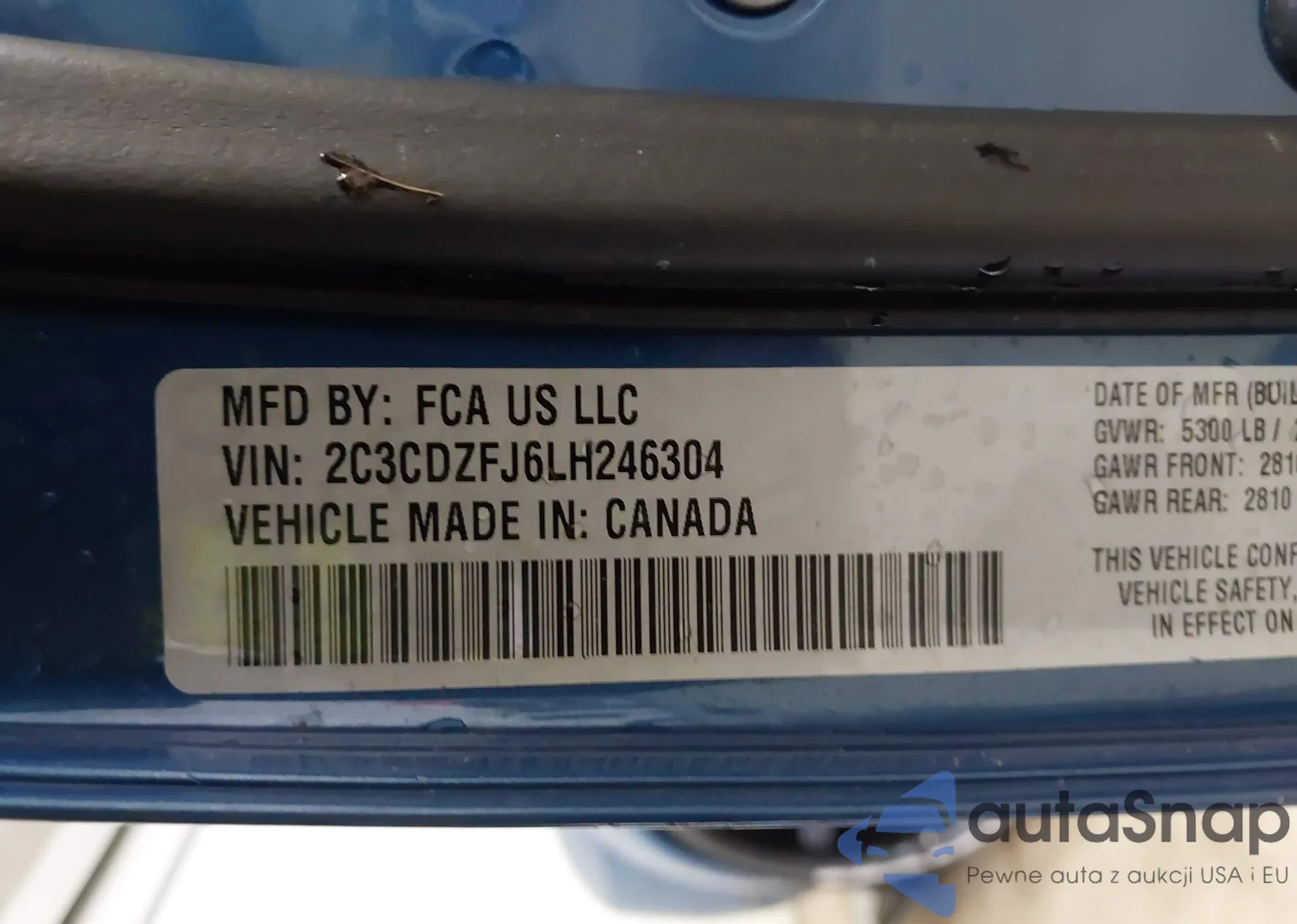 • VIN 2C3CDZFJ6LH246304