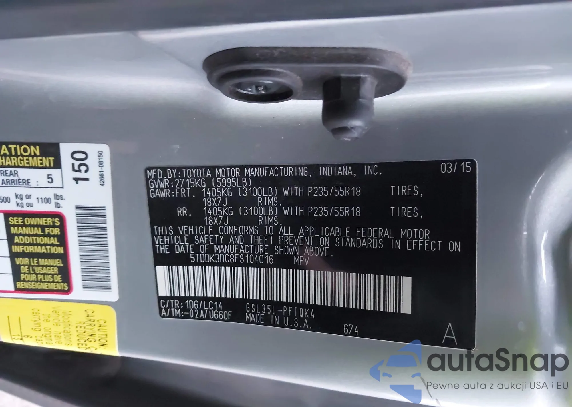 LOT: 43946983 VIN: 5TDDK3DC8FS104016