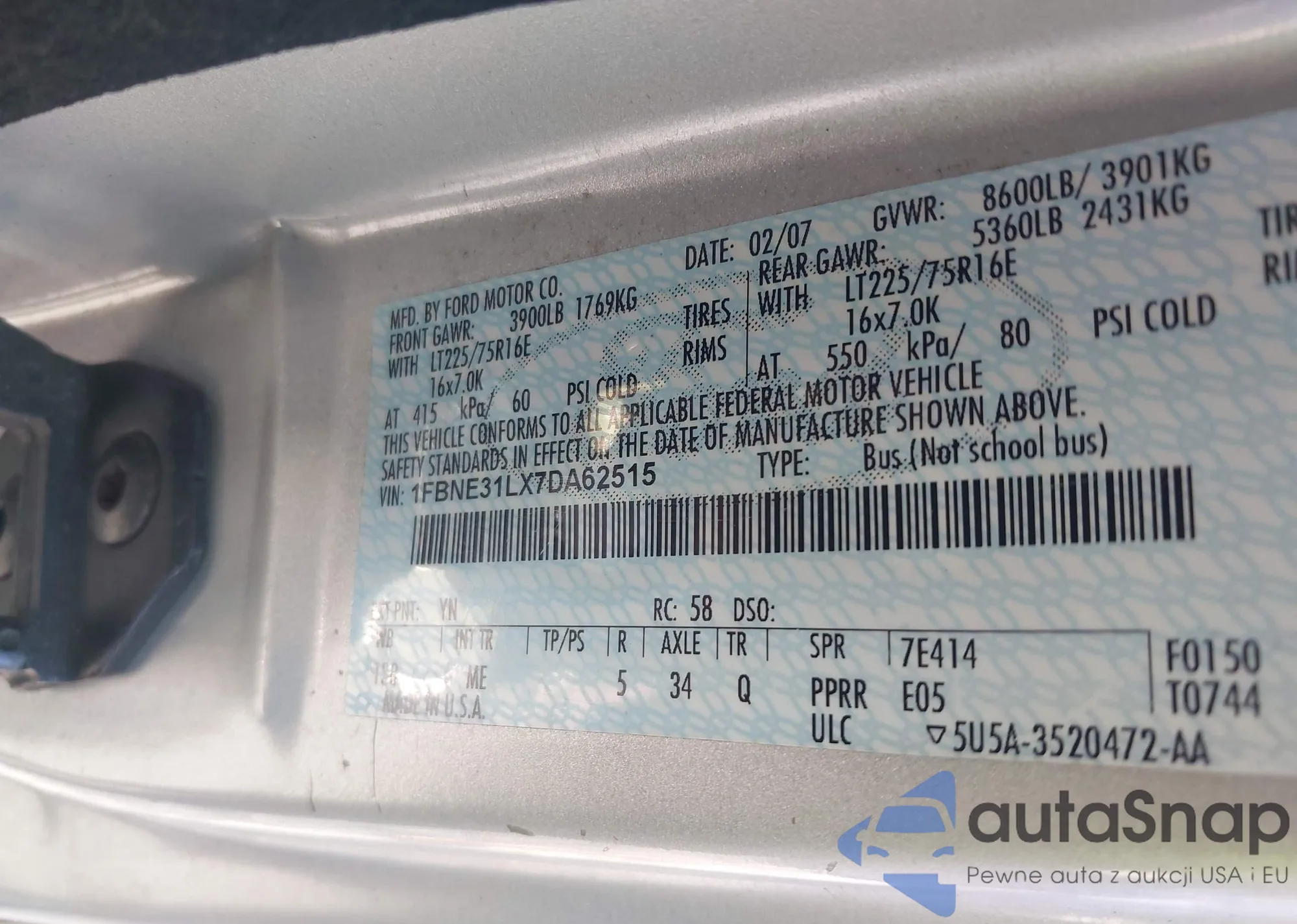 LOT: 43596567 VIN: 1N6BA07A77N206804