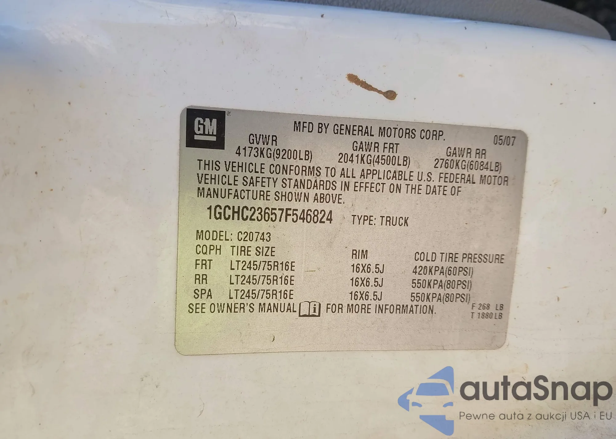 LOT: 43707474 VIN: 1GCHC23657F546824