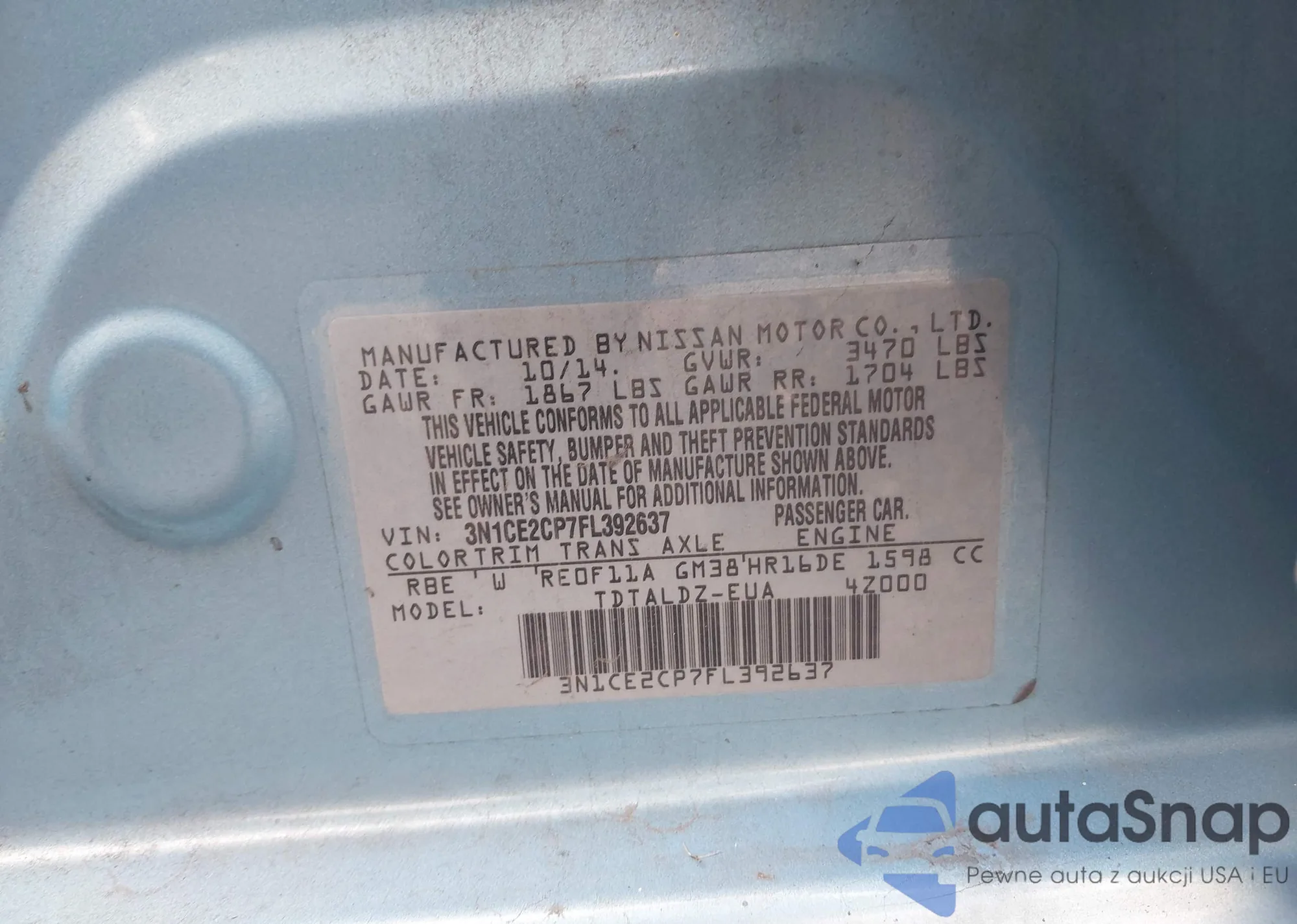 • VIN 3N1CE2CP7FL392637
