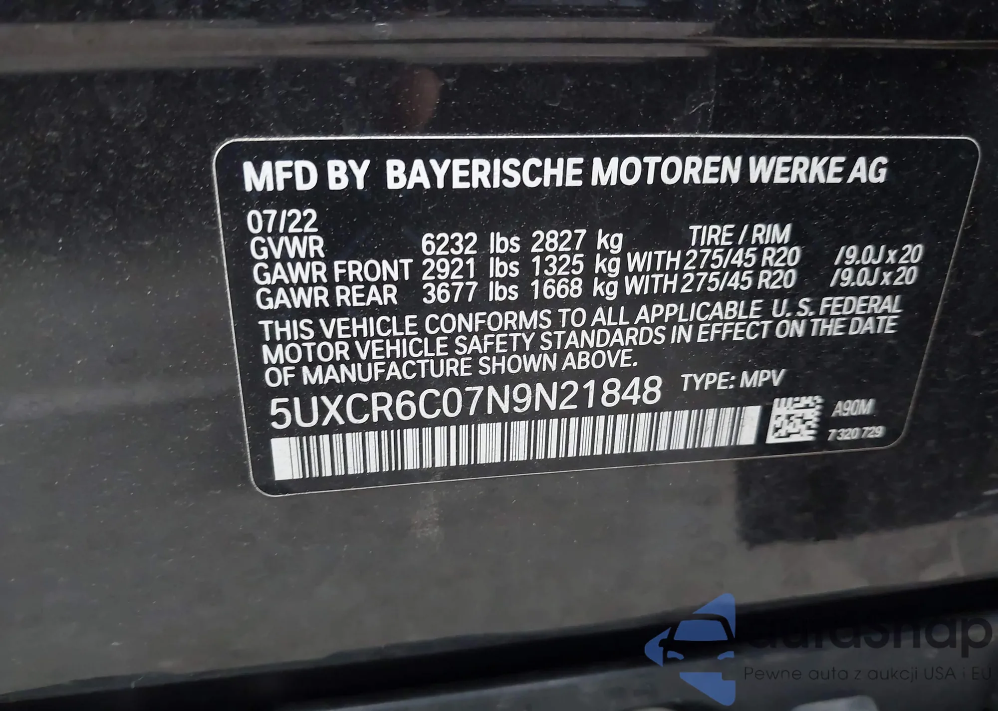 LOT: 43784592 VIN: 5UXCR6C07N9N21848