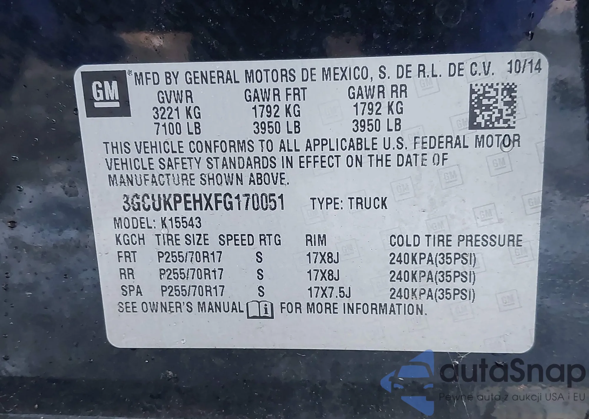 • VIN 3GCUKPEHXFG170051