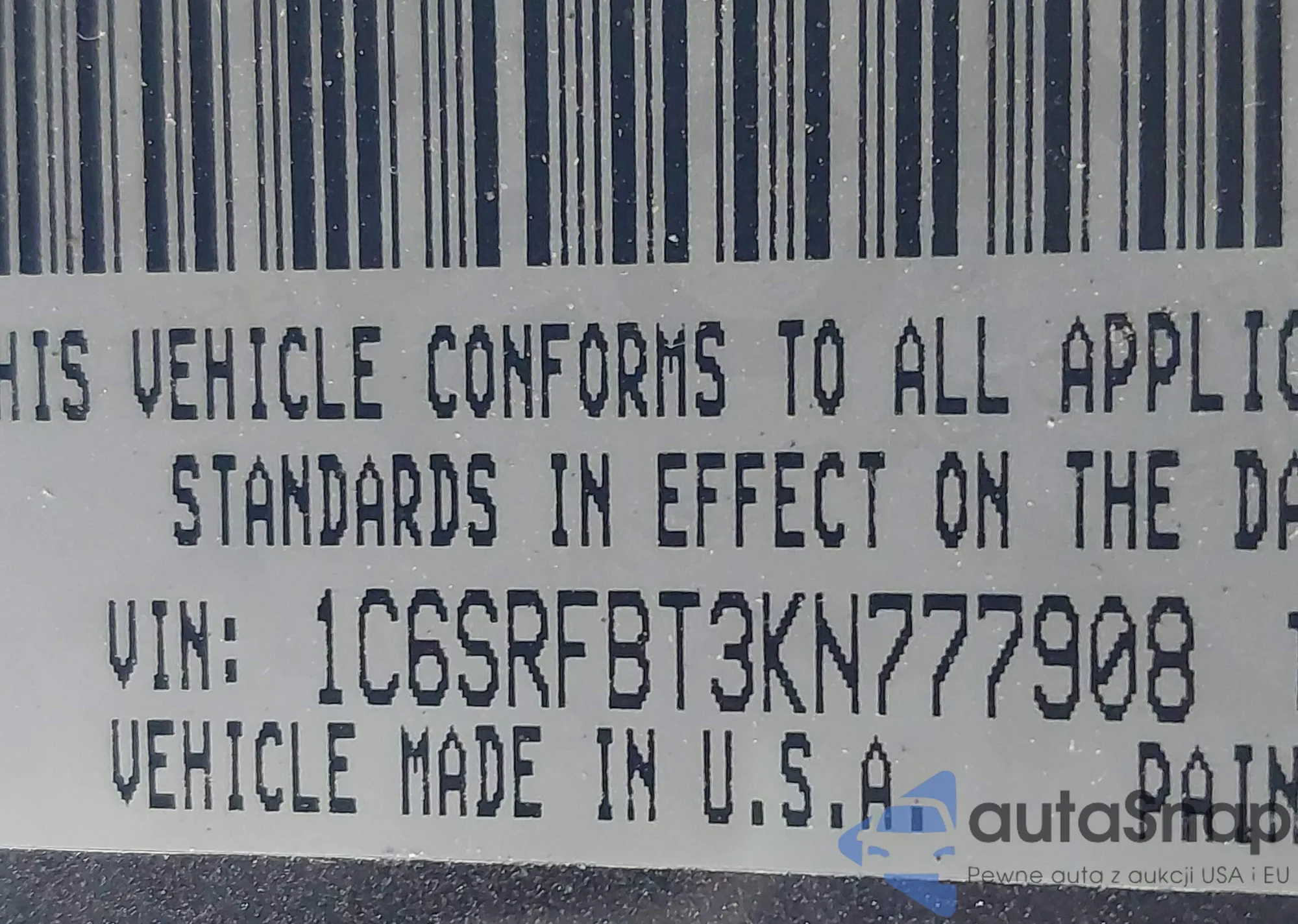 • VIN 1C6SRFBT3KN777908