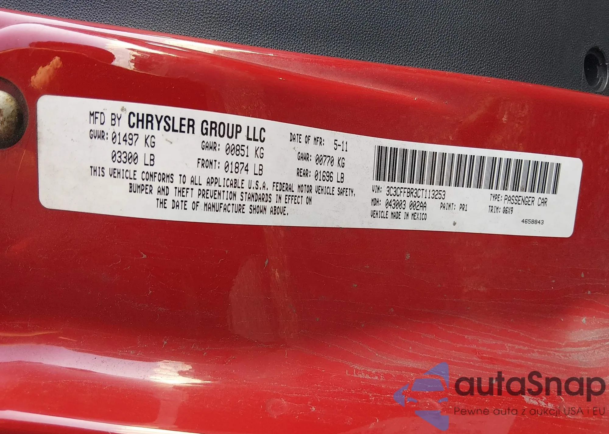 • VIN 3C3CFFBR3CT113253