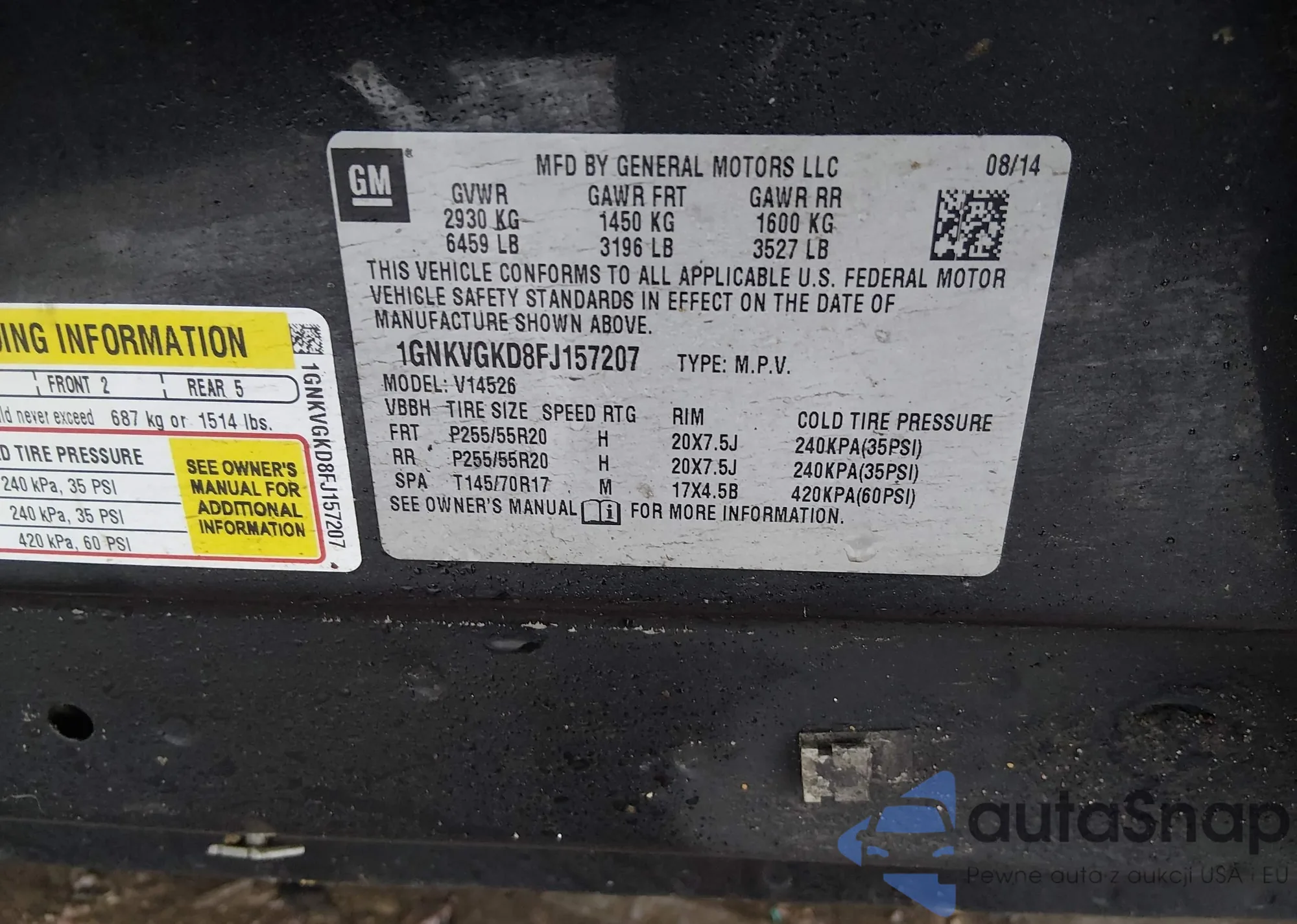 LOT: 43992697 VIN: 1GNKVGKD8FJ157207