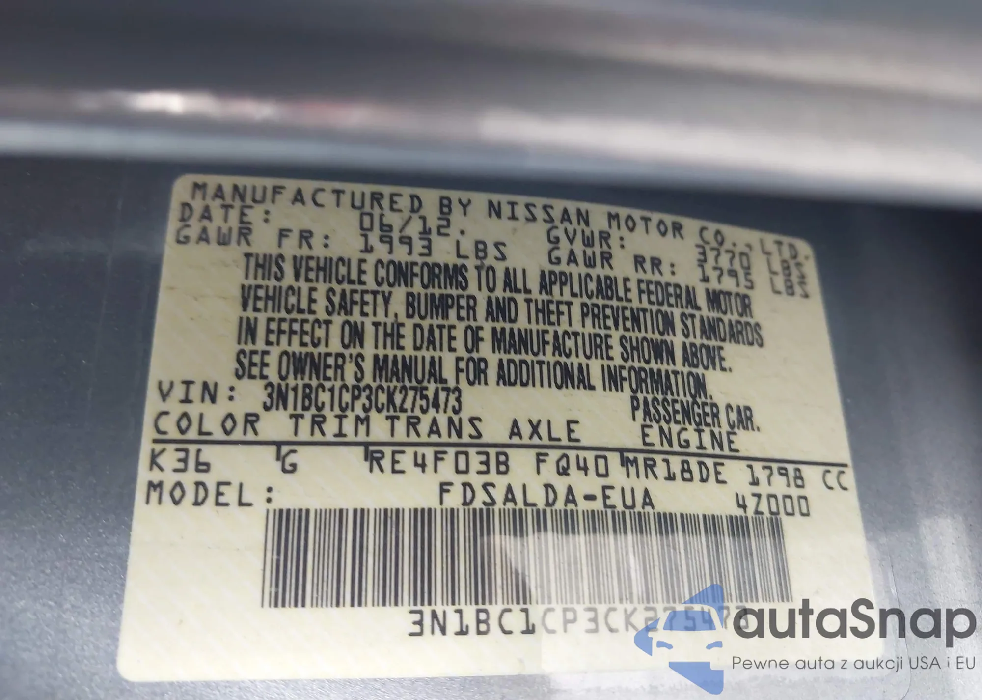 • VIN 3N1BC1CP3CK275473