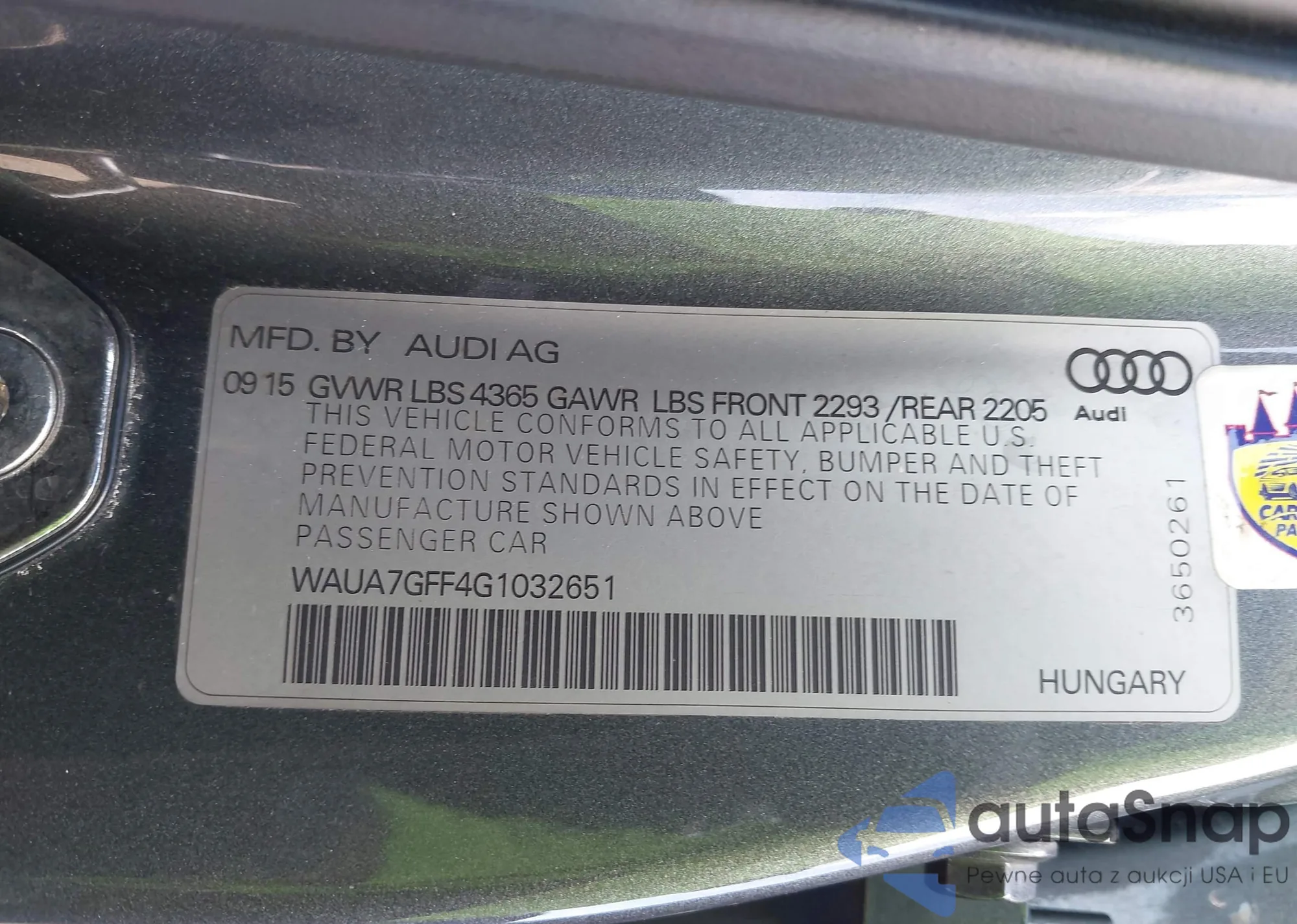• VIN WAUA7GFF4G1032651