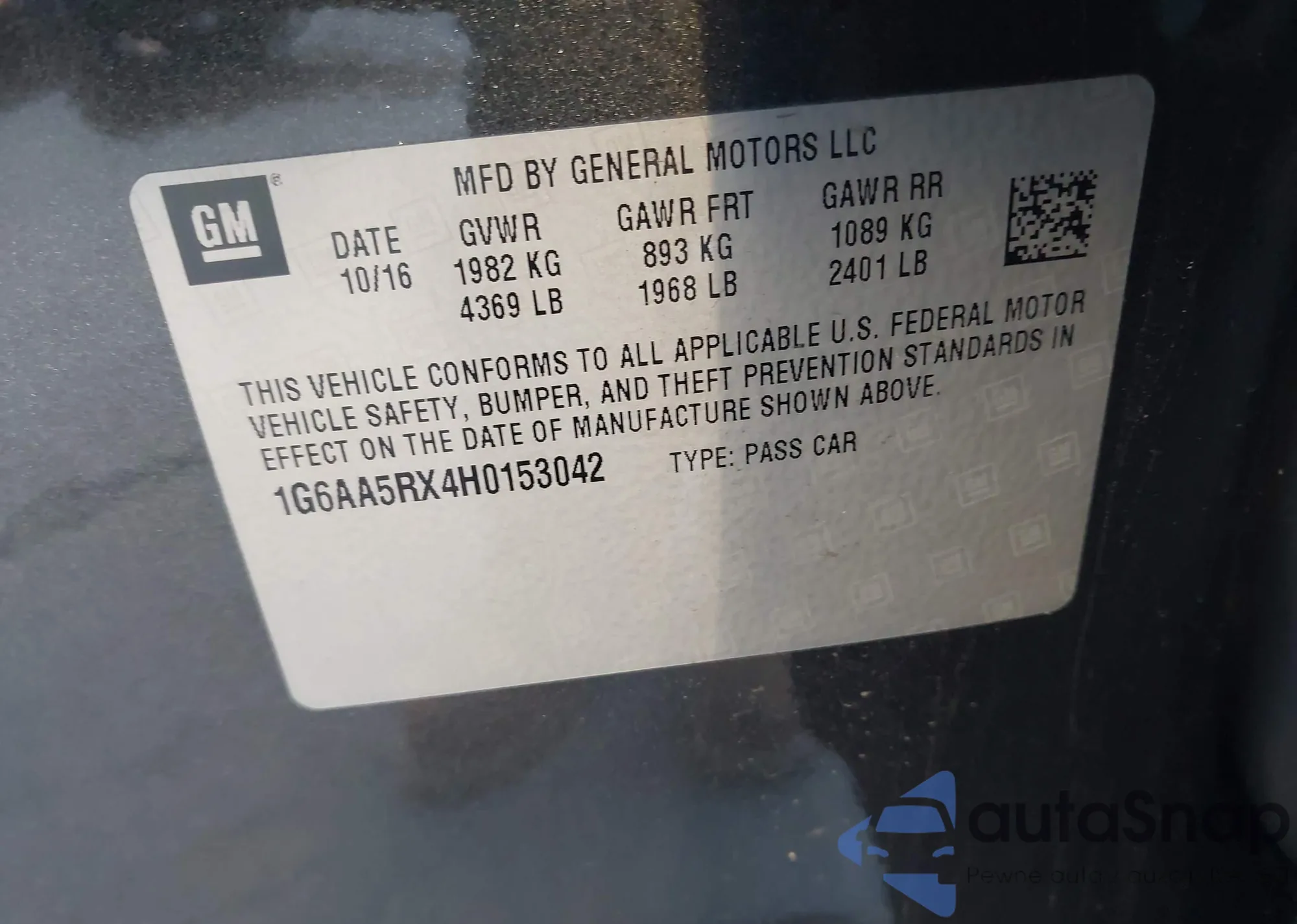 LOT: 43869820 VIN: WAUA7GFF4G1032651