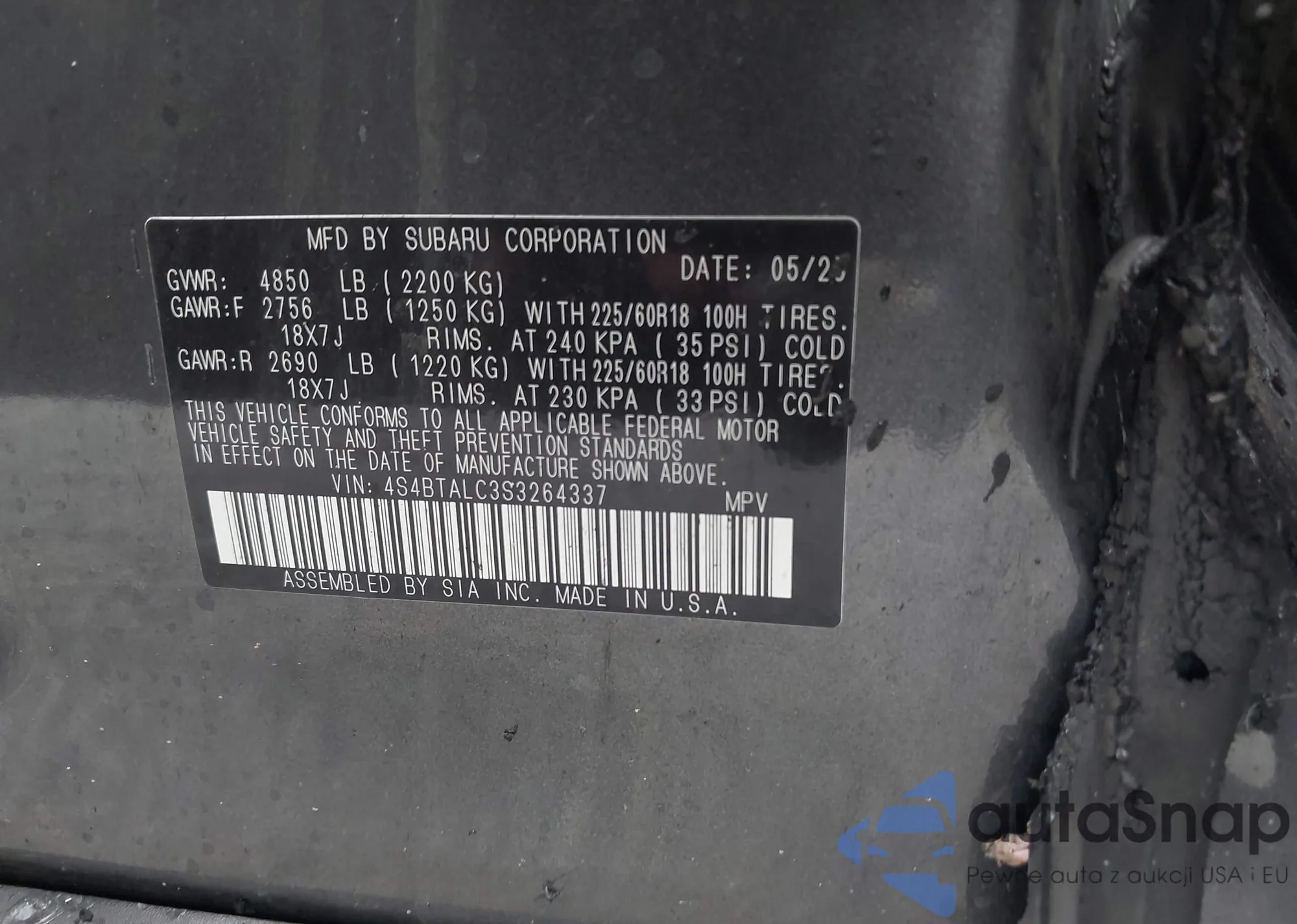 • VIN 4S4BTALC3S3264337